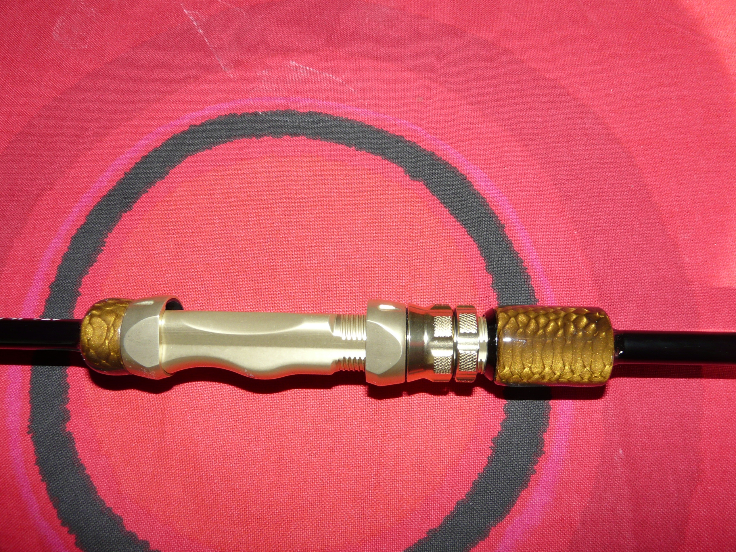 Er hatte da einen geteilten Griff aus dem Material in der Farbe ganz links auf dem Bild auf eine MP1-Spinnrute gebaut. Speziell im Sonnenlicht sah das sensationell aus!