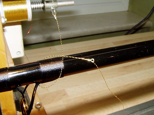 Kein spezielles Bindegarn sondern eine 12kg Geflochtene, kein Rutenlack sondern ich bestreiche die Wicklungen mit Epoxi 2K-Kleber.