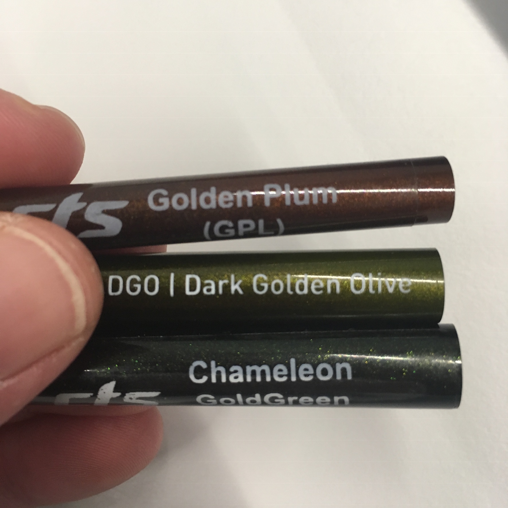 Nur „Chameleon Gold Green“ ist für mich ähnlich schön, mit Abstrichen vielleicht noch Golden Plum. Die drei hab ich für mich mal fotografiert.