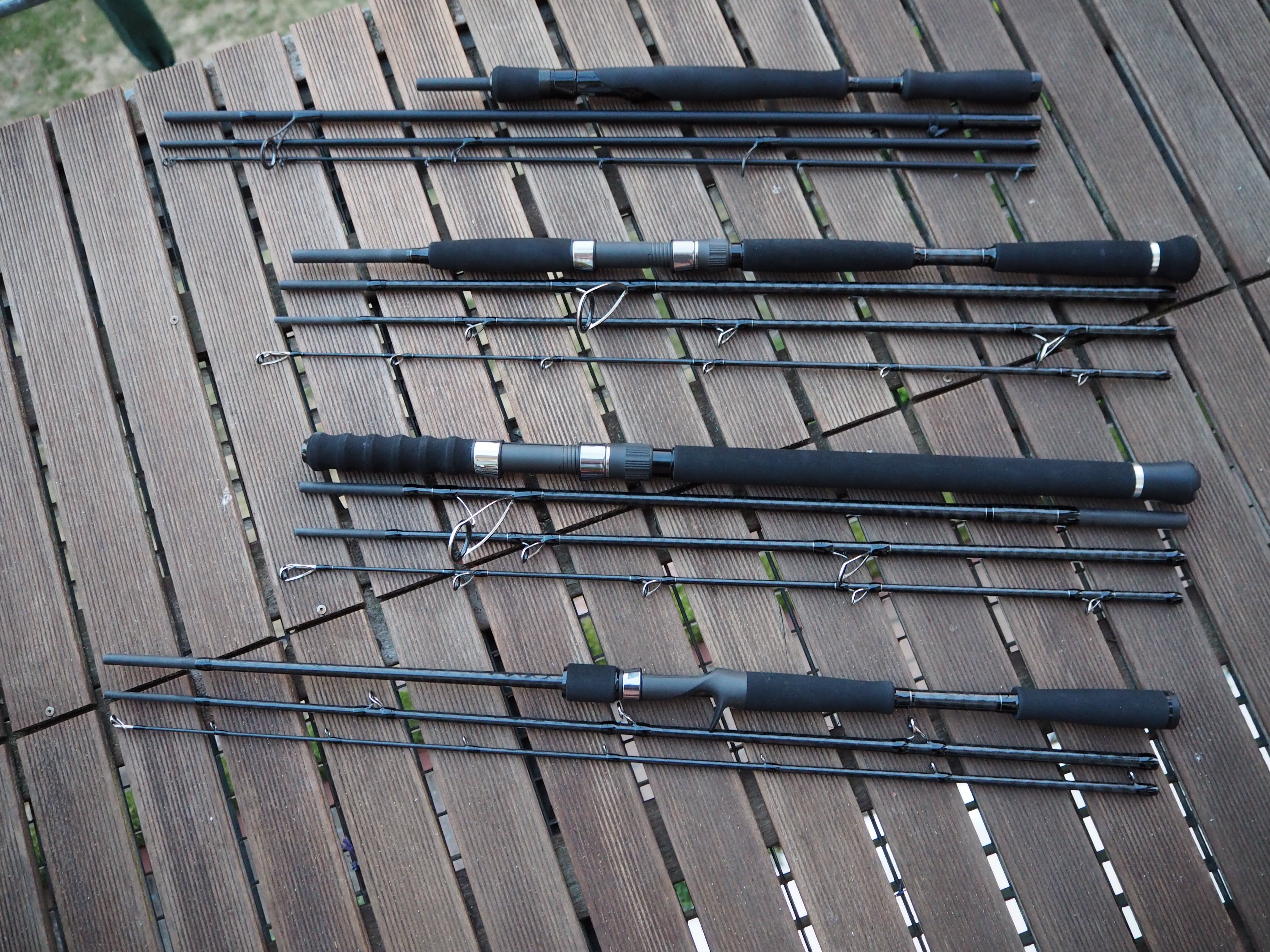 Aufgebaut habe ich nur die vier langen Teile, mit einer Gesamtlänge von 2,70, ein guter Kompromiss...fürs reine Jiggen hätte sie etwas länger sein dürfen, für Wobbler und Popper gerne etwas kürzer.