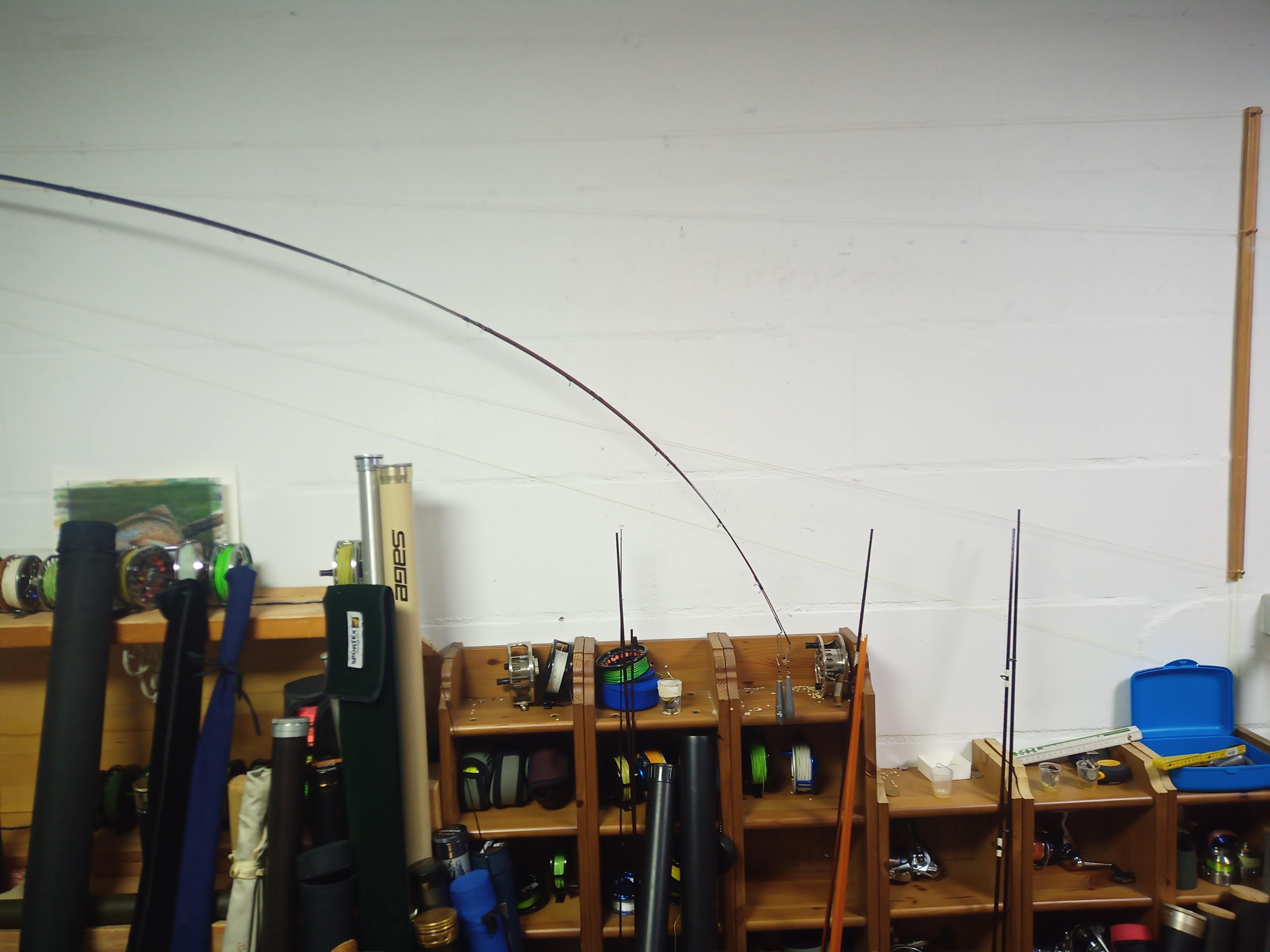 Und falls ihr euch fragt, warum ich mir überhaupt diesen Aufriss mache, habe ich noch zwei Belastungsbilder (wegen der Perspektive) meiner Loomis NRX zusammen mit der Parachute angefügt. Dass ich sie mit der Loomis verglichen habe, war wohl so eine Ahnung nach dem ersten Werfen. Ein echter Vergleich im Werfen kommt aber später. Wollte die Rute dafür eigentlich wie die NRX beringen, was jetzt ja wohl flachfällt.