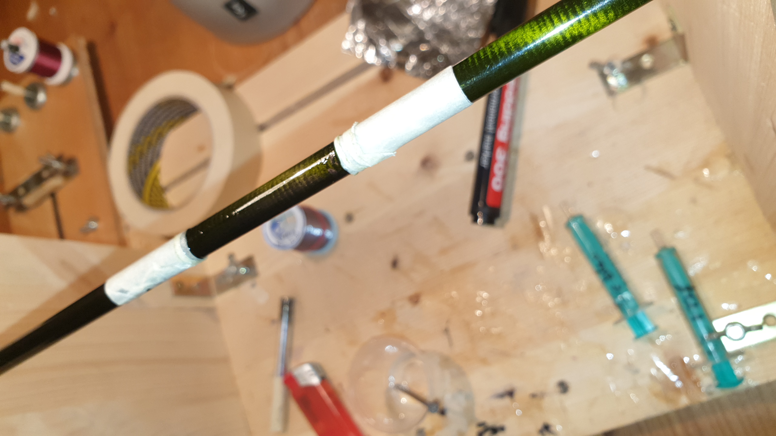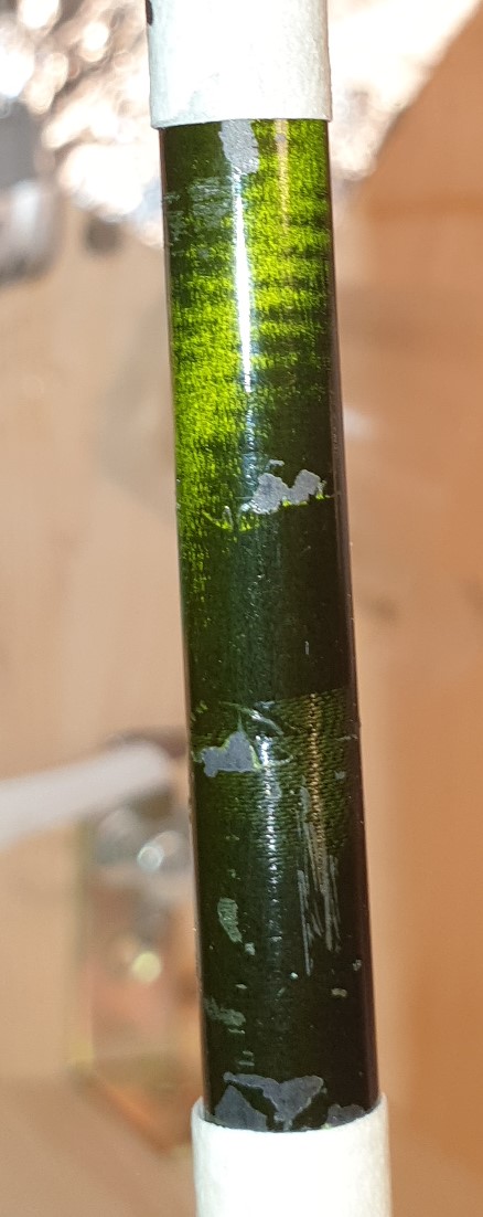 Fakt ist jedenfalls, dass ich die Platzer irgendwie ausbessern muss. Ein Arbeitskollege hat mir jetzt vorgeschlagen, nach dem Strippen der Rute die gesamte zuvor lackierte Länge mit 5000er Schleifpapier anzuschleifen und Ultrafein nachzulackieren. Somit sollten die Platzer auch ausgefüllt sein und durch die umliegenden grünlackierten Stellen quasi auch grün schimmern...
