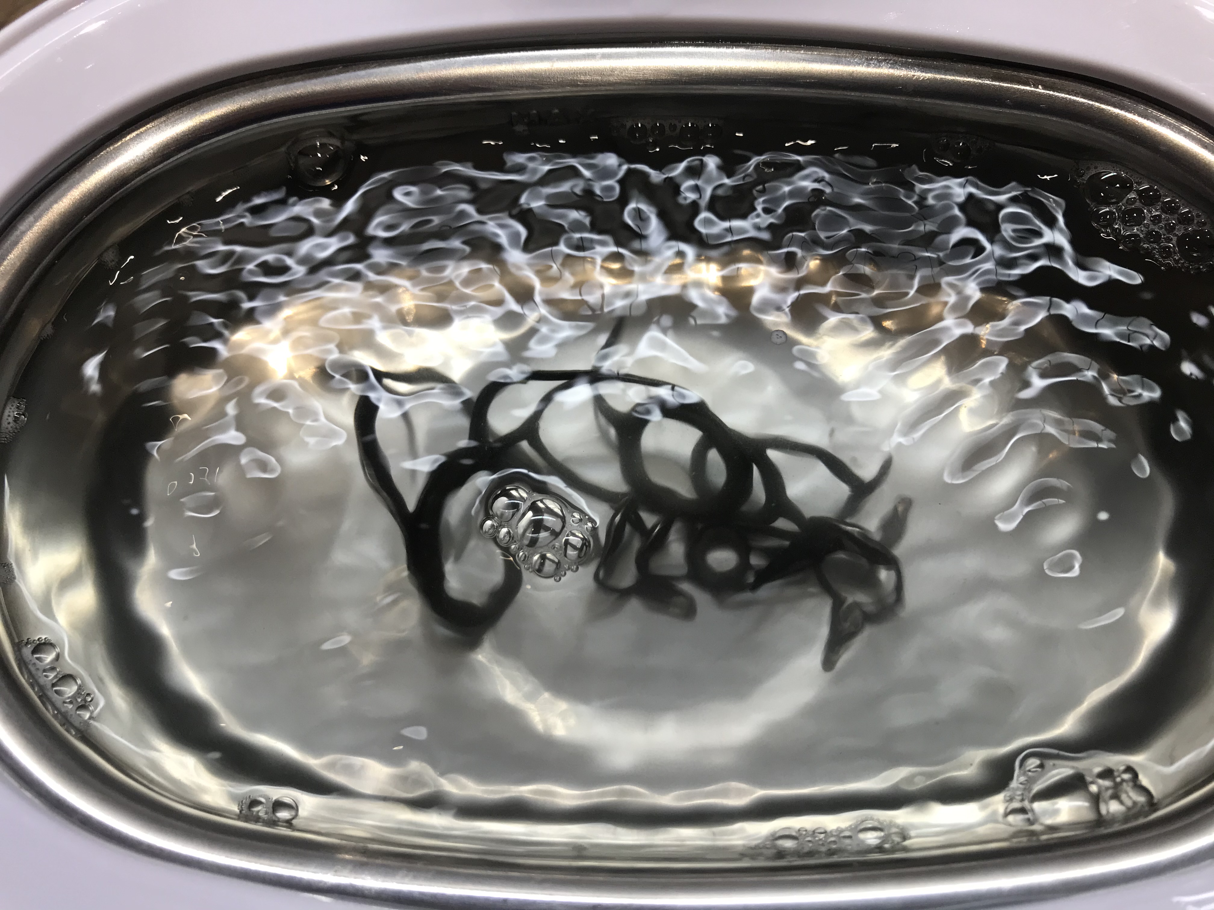 Hi. Mit Ultraschallbädern wäre ich vorsichtig. Auf der Arbeit habe ich manchmal mit Rückschlagventilen zu tun in denen die Kugel aus Rubin/Sapphire ist. Der Hersteller sagte uns, dass man die harte Oberfläche im Ultraschall beschädigen kann (Kavitation). Daher würde ich die wegen den Ringeinlagen vermutlich nicht ins Bad legen wollen.