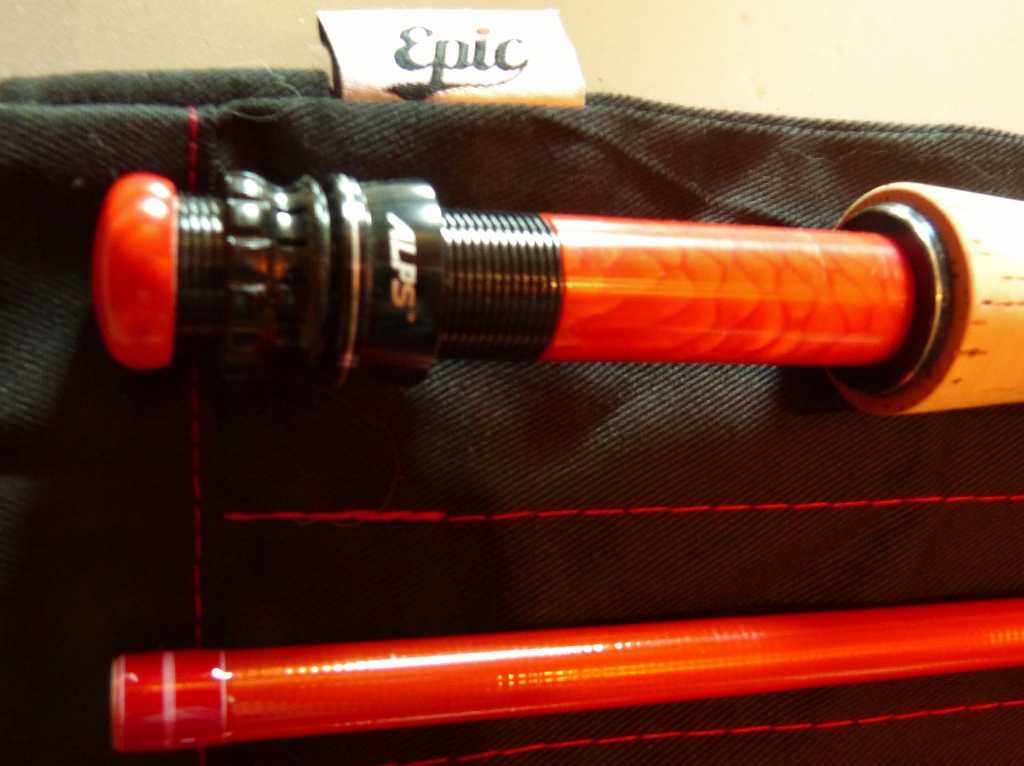 Es ist also die 5-teilige Packlight-Version der 476er Epic in Salsarot. Aufbau wie auf den Fotos ersichtlich recht einfach. Korkgriff, Alps RA7 Hardware mit Spacer und AK aus Juma "Magmadragon", die Black-Velvet-Recoils in Fuji NOCP rot gewicklet und nur dezente, weisse Zierwicklungen. Was mir nachträglich etwas stinkt, ist das fette ALPS Windingcheck, da hätte ein schönes dünnes mehr hergemacht aber revidieren wollt ichs nun auch wieder nicht...