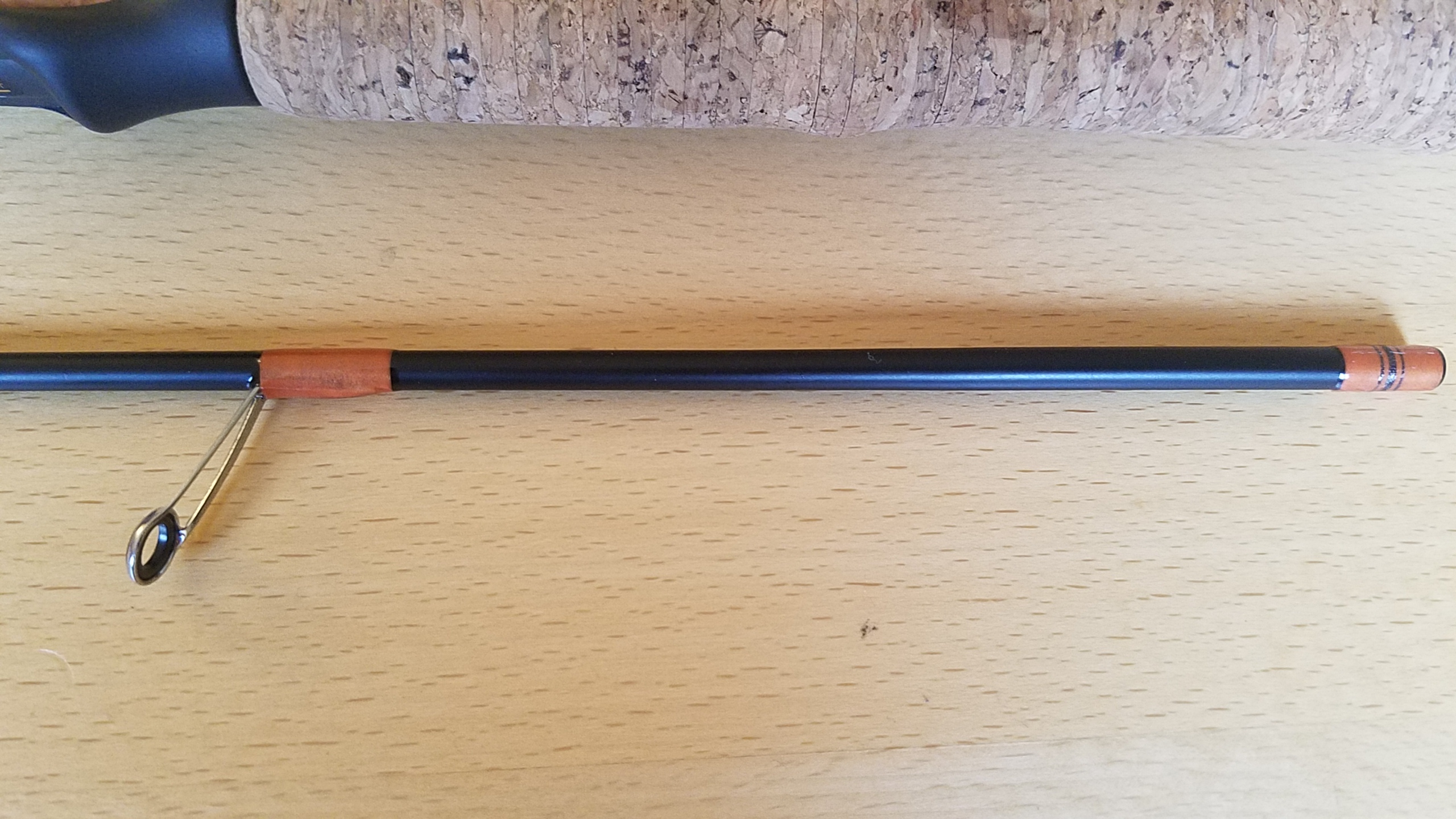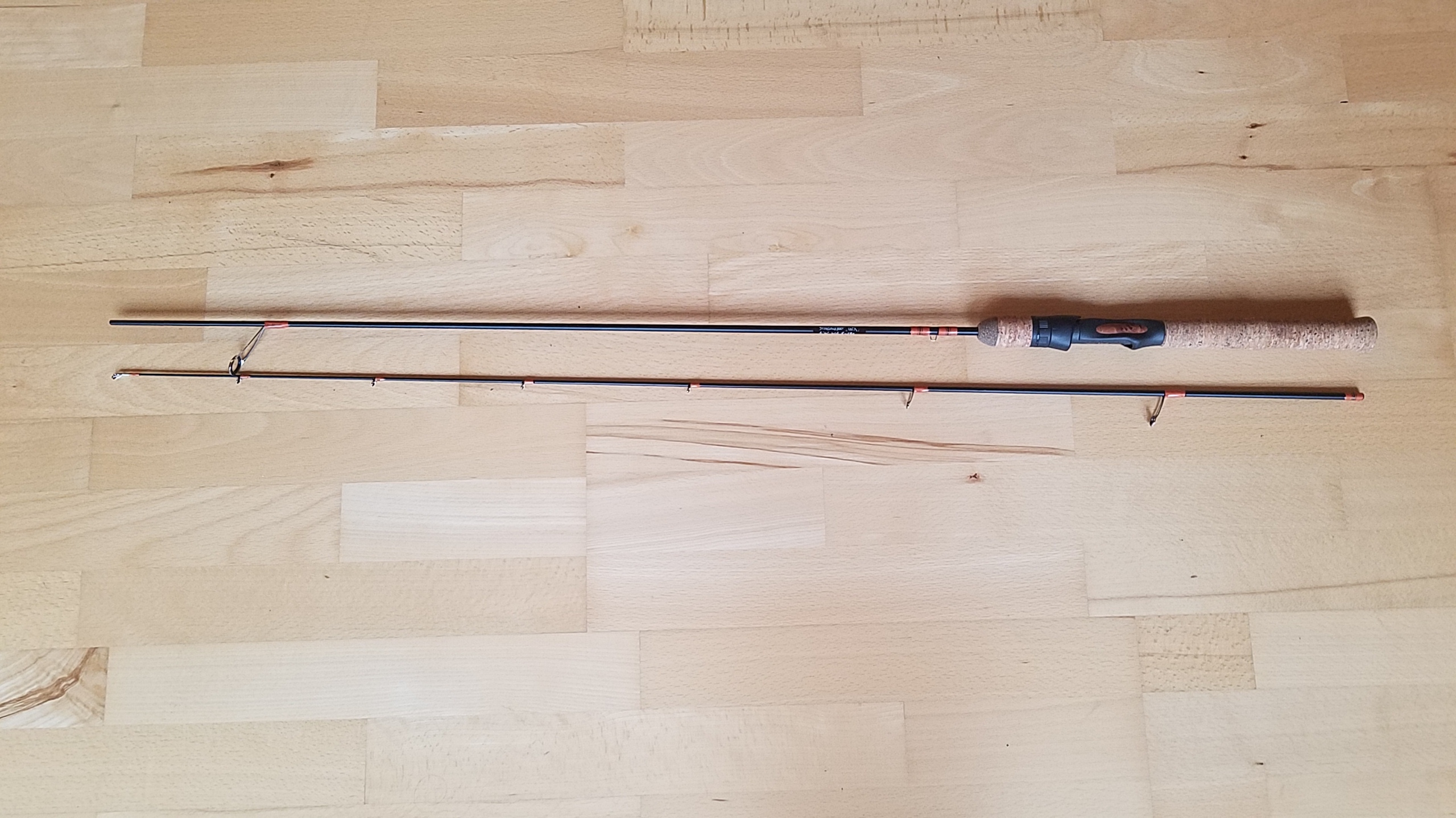 hab mal auf die Schnelle eine kleine Spinnrute für meine Schwägerin zusammengebastelt. Mein Bruder hat das unverschämte Glück eine angelnde Frau zu haben. Sie kommt aber auch aus Finnland, da scheint das normal zu sein. Ist für das Haus am See, wo sie immer Urlaub machen. Gefischt wird damit hauptsächlich auf Forelle und Barsch mit kleinen Wobblern (und was man sonst so an ne Spinnrute hängt).