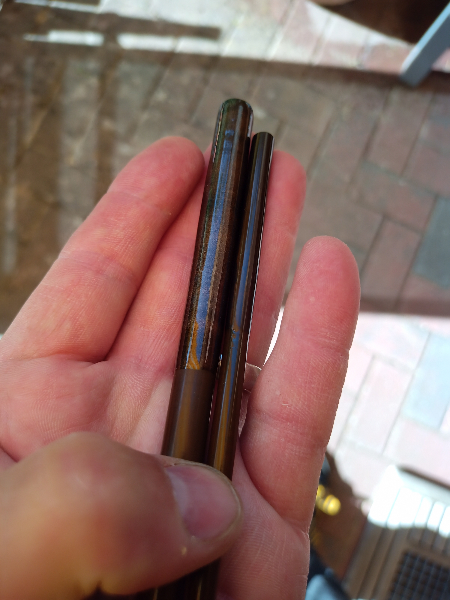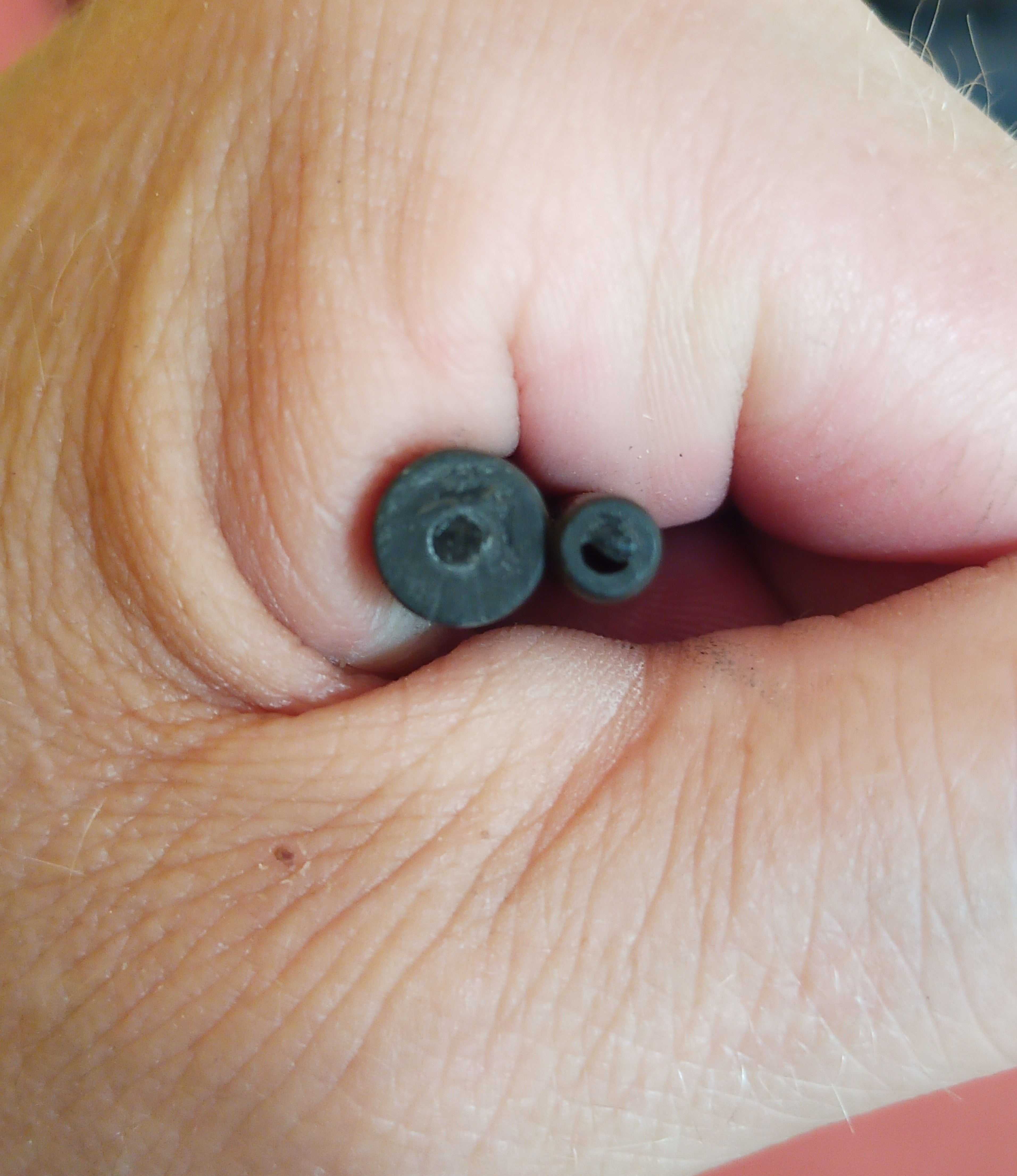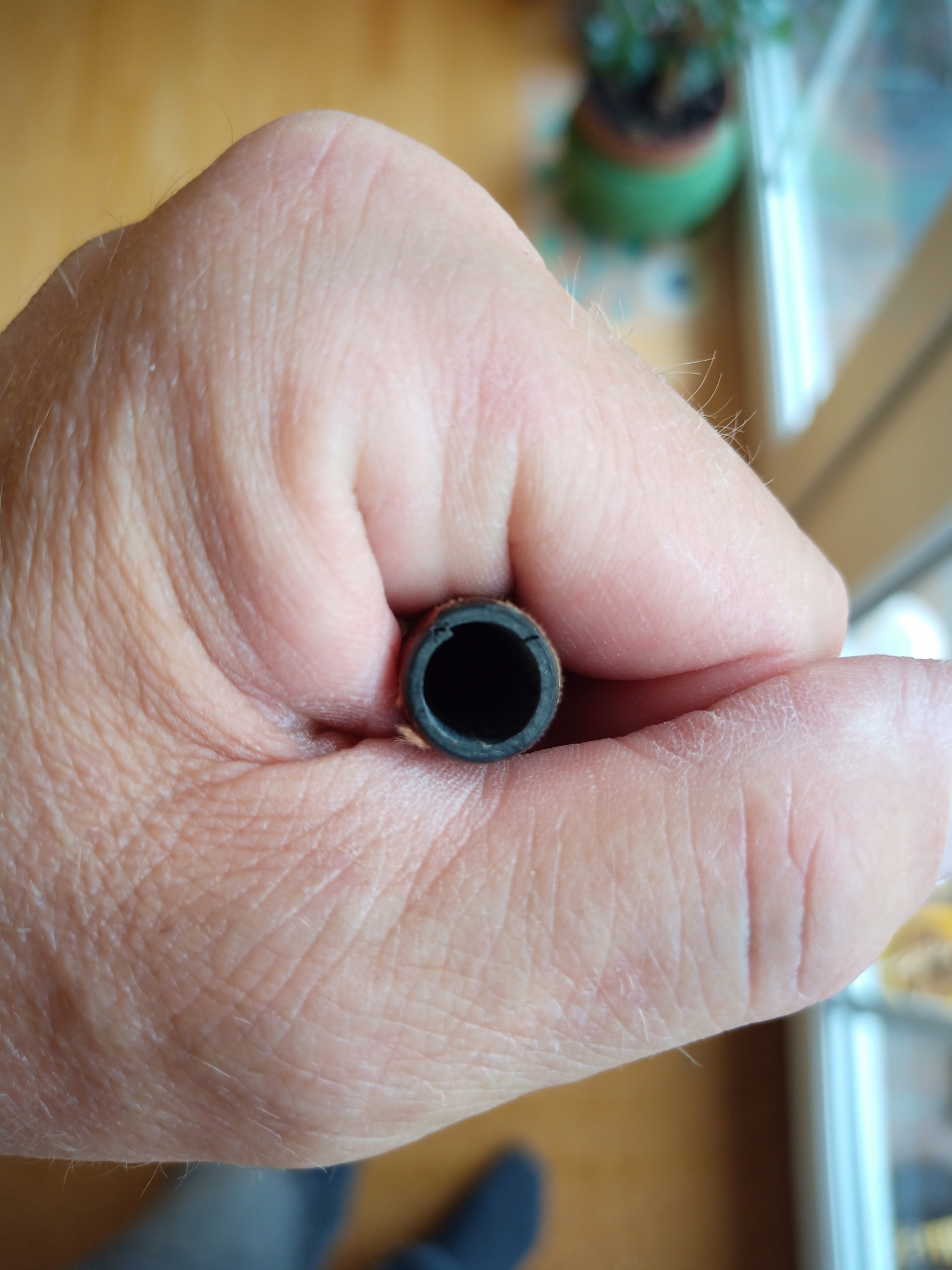 Bei meinem HT ist das untere Ende noch extremer, da ist die Wandstärke ca. 1/4 des Durchmessers und das Loch am oberen Ende ist gerade mal Stecknadel dick, in Relation zum AD noch kleiner als bei deinem HT.