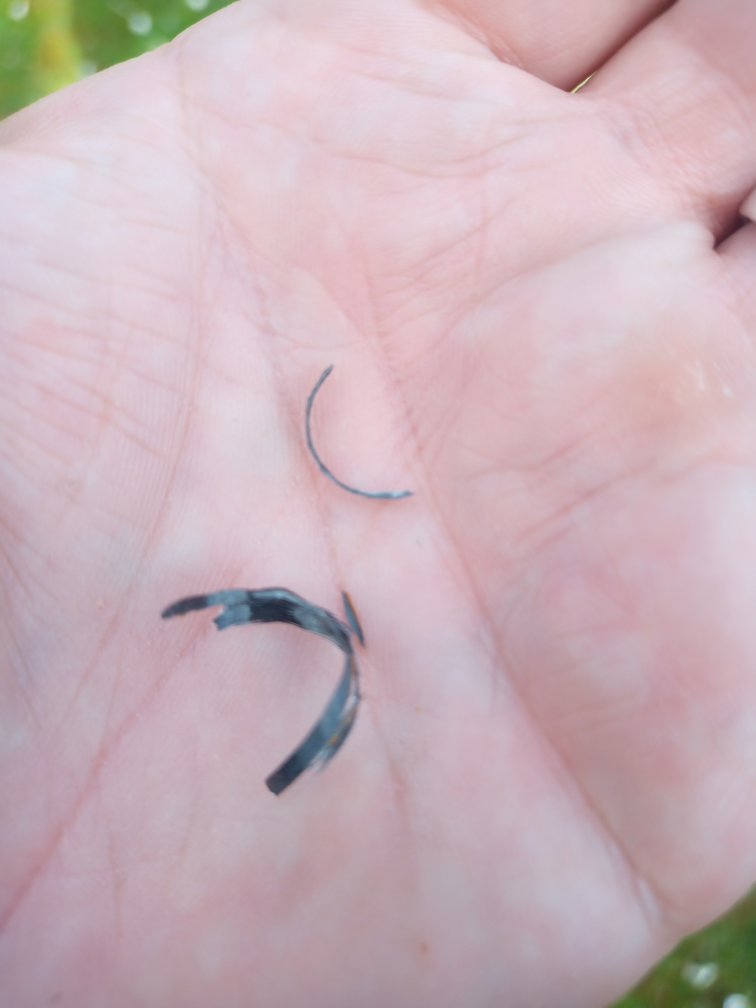das Roving ließ sich fast wie bei einem Apfel abschälen! Ein wenig mühsamer ist es zwar schon, aber mit ein bisschen Vorsicht kommt man bis auf den Blank. Man muss aber dünne Schichten abtragen. Und eine gute Messerklinge verwenden. Den letzten Rest habe ich wie Lack abgeschabt. Es ist eine ziemlich dicke Manschette drauf, deshalb sieht sie fast aus wie eine Hülse, die auf den Blank geklebt wurde.