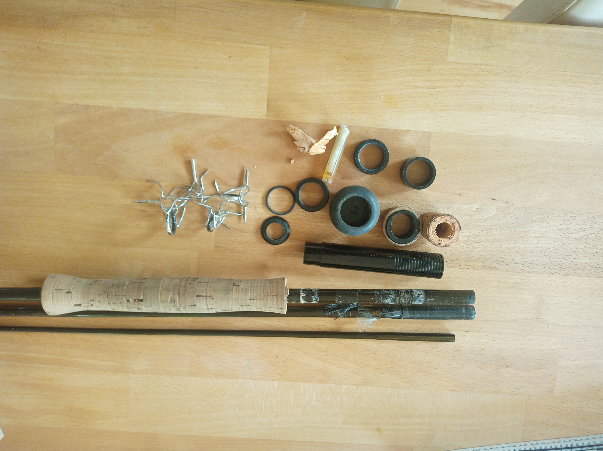 Mein Plan ist jetzt natürlich gescheitert, da die Rute sich mit einer reparierten Steckverbindung kaum verkaufen lassen wird. Und in dem Zustand der Ringbindungen würde ich auch keine Rute verkaufen.