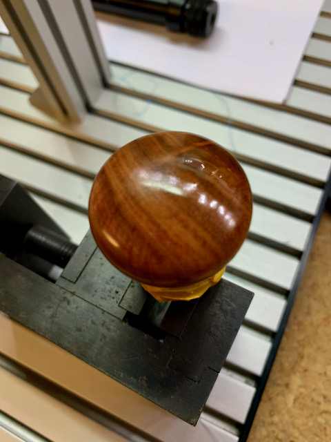 Beim zweiten Griff habe ich die Nut und das Holzteil vorher mit PU Lack lackiert. Dabei habe ich auch den Korkrand behandelt. Sieht eigentlich ganz gut aus.