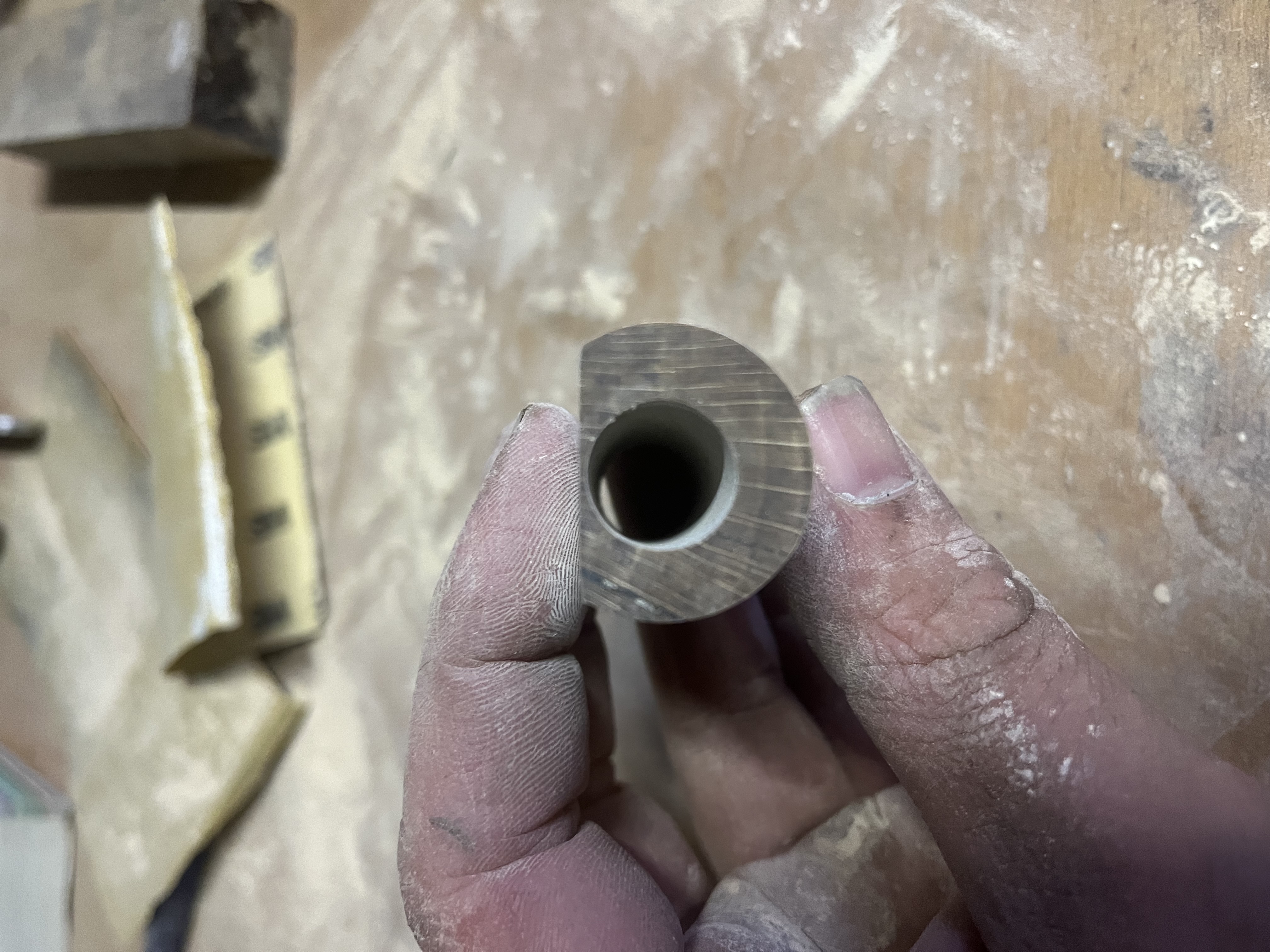 Die ersten Probleme waren auch schon da. Das Material ist so extrem hart das ich Probleme hatte es rund zu bekommen das ging wirklich nur Stückchen weise.