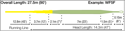 Die dickere Spitze bedeutet auf weniger Schnurmeter mehr Gewicht draußen - also schnelleres Aufladen der Rute. Zumal die Gold ein extrem kurzes Fronttaper mit einer dicken Spitze hat.