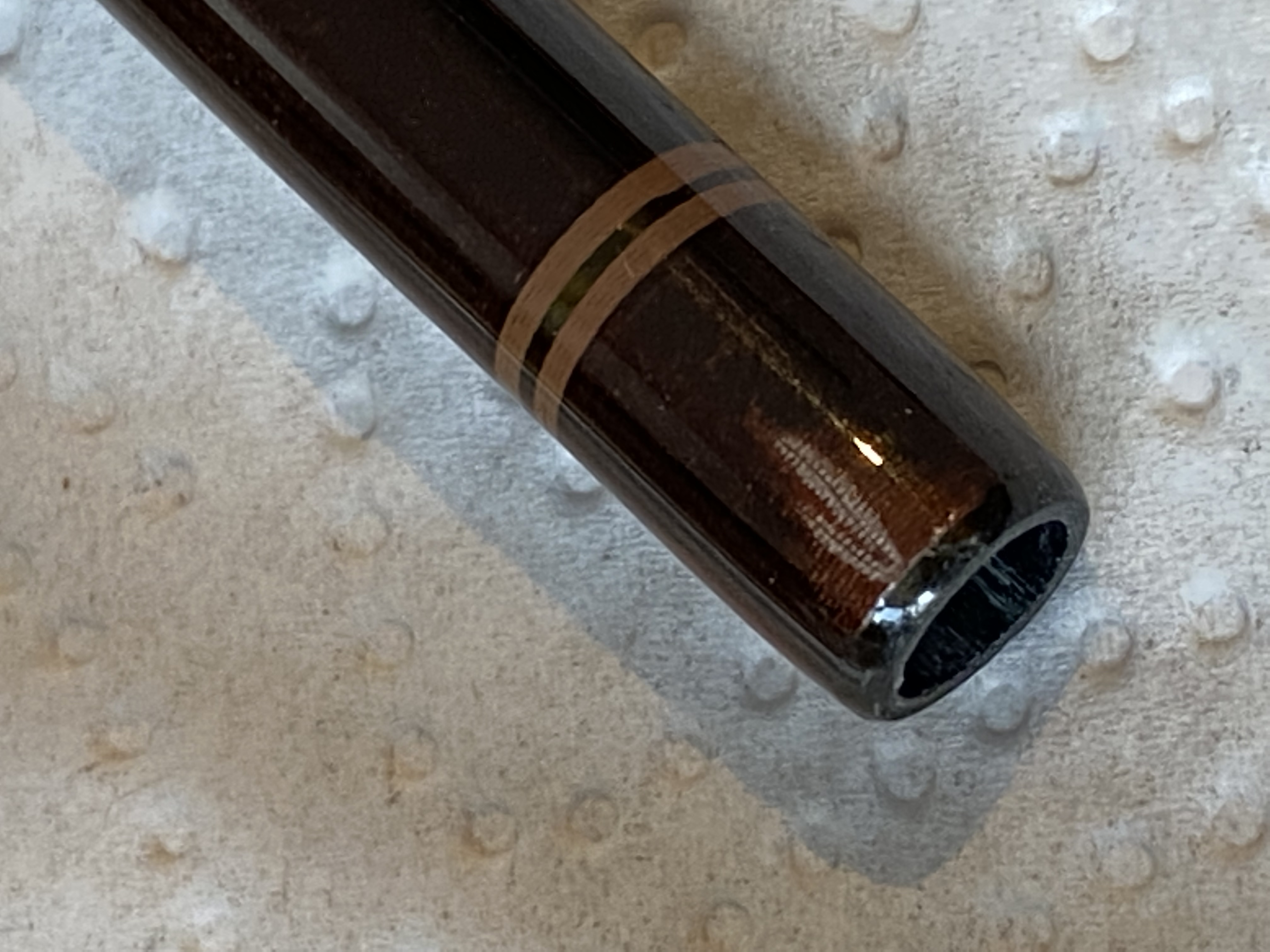 Ebenfalls zeigt sich in der Stützwicklung des Spitzenteils ein leichter V-förmiger Riss sowie ein paar Millimeter weiter ein leicht heller Fleck in der Wicklung.
