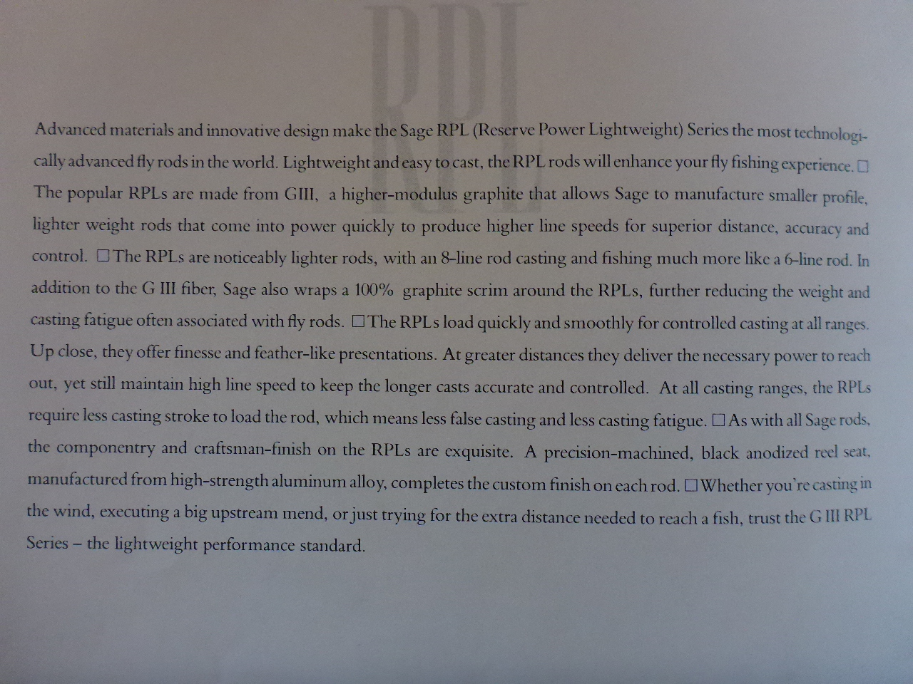 Hab die XP auch nur erwähnt, weil sie in den Augen vieler Fliegenfischer eine der besten Sage Ruten war, hier aber im Material der Trend der alten Werbung "höherer Modulus = bessere Rute" nicht fortgesetzt wurde. Der Materialbezeichnung nach, scheint hier eine Verbesserung des älteren GIII Materials erfolgt zu sein. Sagen deine Kataloge etwas über das GIIIe Material?