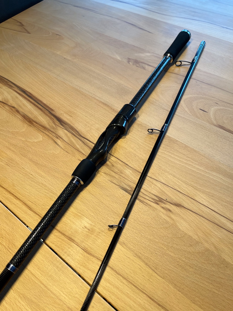 Blank ist extrem schnell, bedingt durch das Taper natürlich spitzenorientiert, wobei der Blank unter Last auch weiter hinten mitarbeitet. Leicht ist sie nicht geworden, 155gr kommen auf die Waage. Aber, ich hatte noch nie eine solche, gefühlt leichte Rute in der WG-Klasse in der Hand. Was natürlich total logisch ist, das Spitzenteil wiegt nahezu nichts, das ganze Gewicht ist hinten.