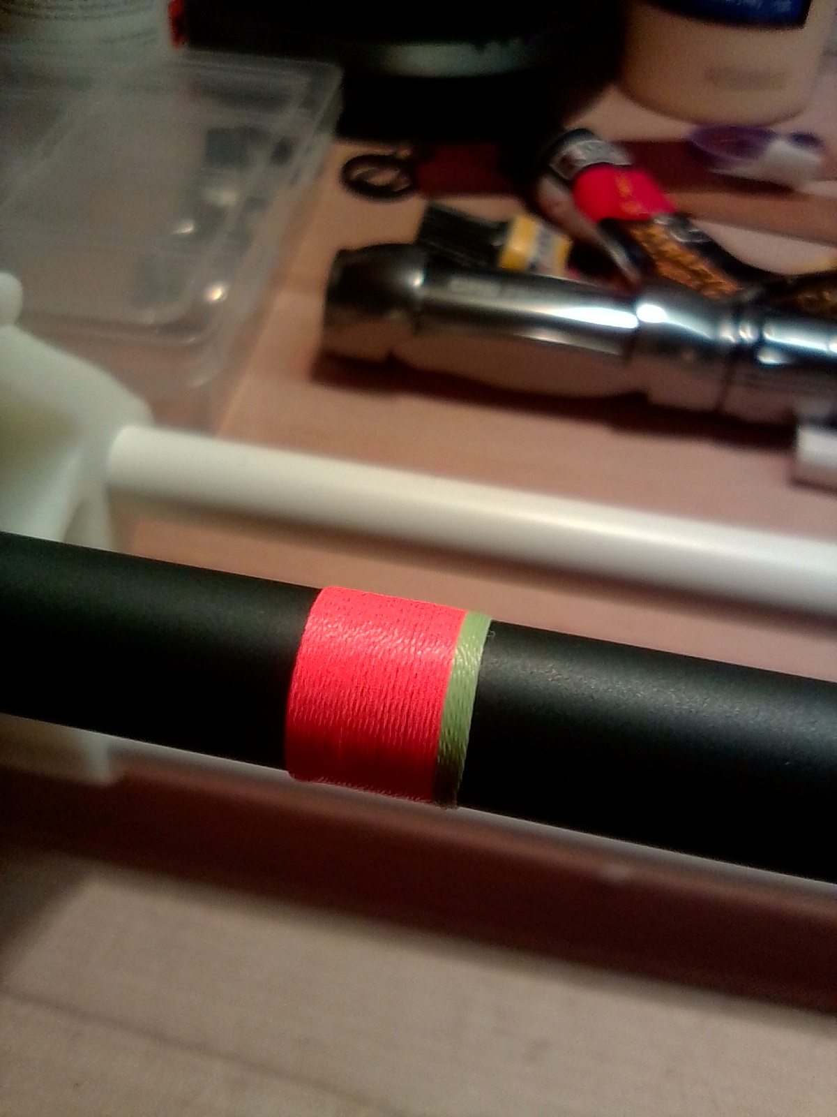 Garn: Nylon Neon Orange NOCP Stärke A (Zierwicklungen weiß ich noch nicht)