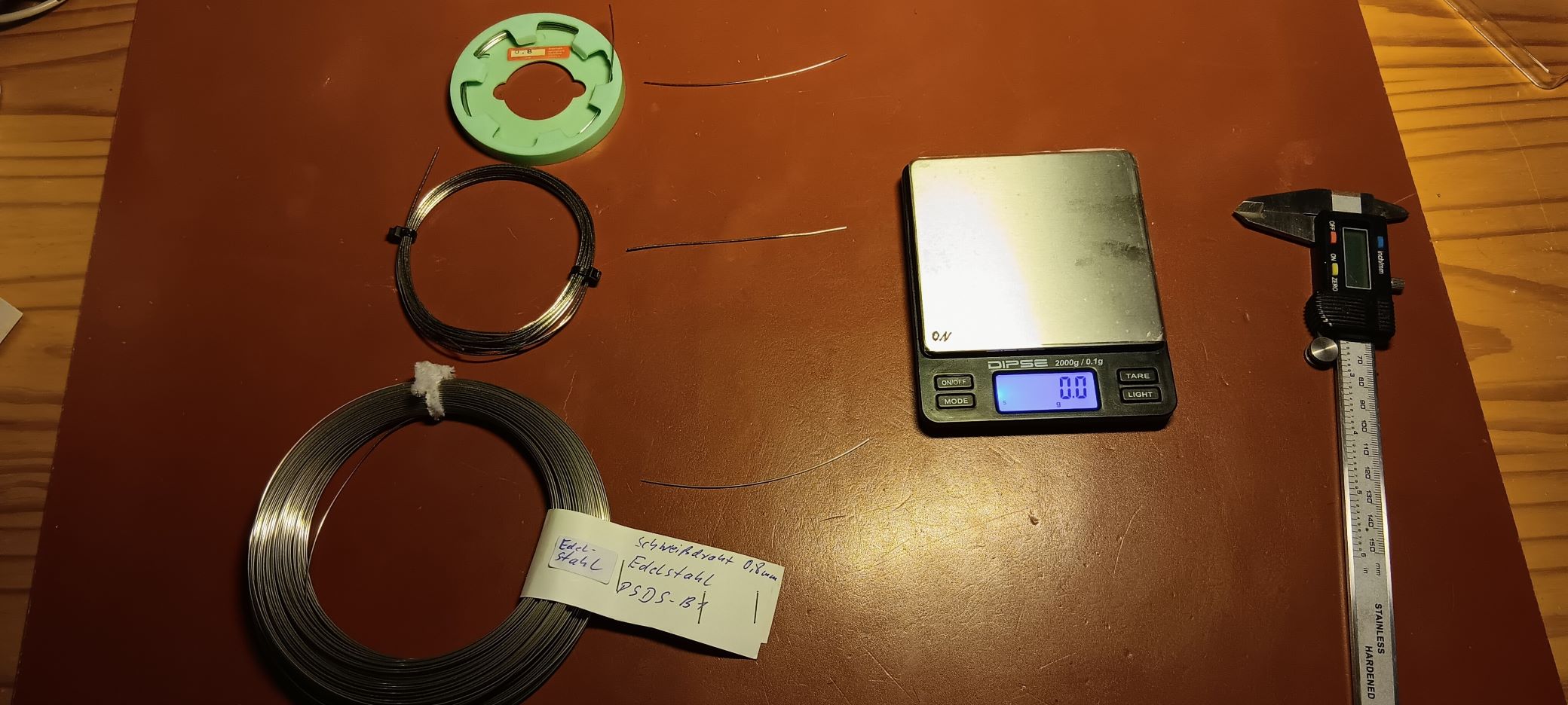 0,6mm Draht ist fast 45% leichter als dein 0,8mm Draht. Allein das entspricht dem Gewichtsunterschied von Stahl und reinem Titan.