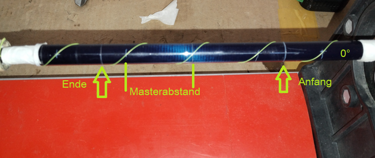 Hier sei angemerkt, dass es sinnvoll ist sich die Gradzahlen der Achsen sichtbar anzuzeichnen und vielleicht auch irgendwie die Mitte und Wicklungsende, sonst kann das ganz schnell recht unübersichtlich werden.