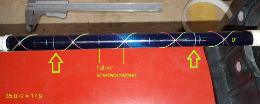 An der Stelle sei auch darauf hingewiesen, dass wenn man Blanks hat mit starker Steigung und/oder sehr lange Wicklungen, man bei den Kreuzpunktabständen in Richtung Spitze von der Mitte her, vielleicht immer plus 0,5-1mm zugeben kann, in die Gegenrichtung abziehen kann.