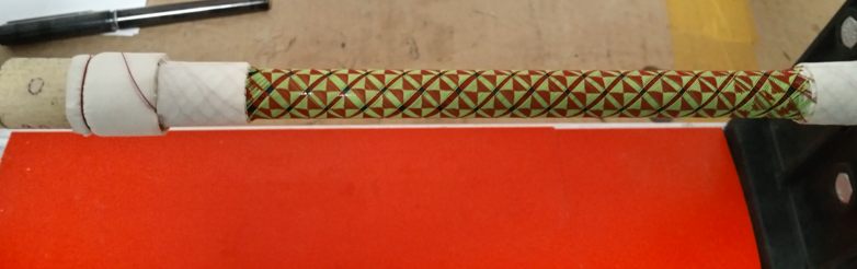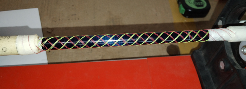 Ich hoffe man erkennt, was mit den Wiederholungen gemeint ist, bis sich die Wicklung schließt. Nachdem man kurz vor Schluss noch ordentlich packen muss, ist die Wicklung irgendwann geschlossen. Jetzt kann man immer noch mal alles ein wenig nachrichten und auf dem Blank in die Richtige Richtung schieben, bis die Wicklung einem passt.