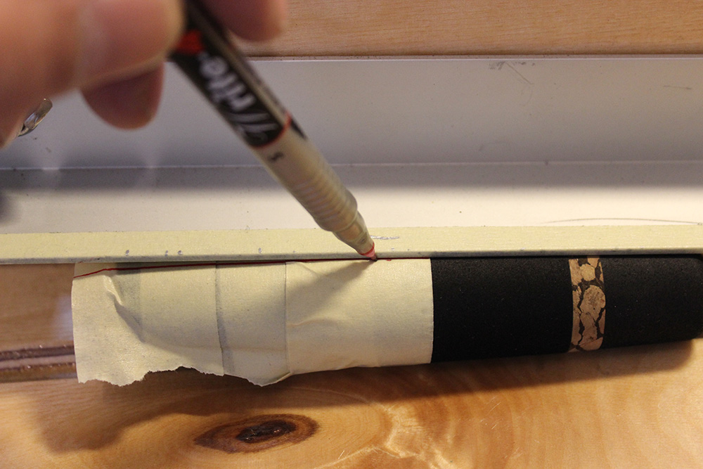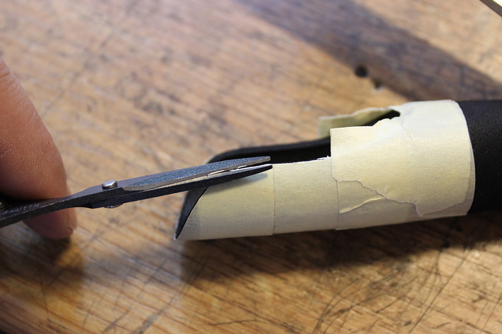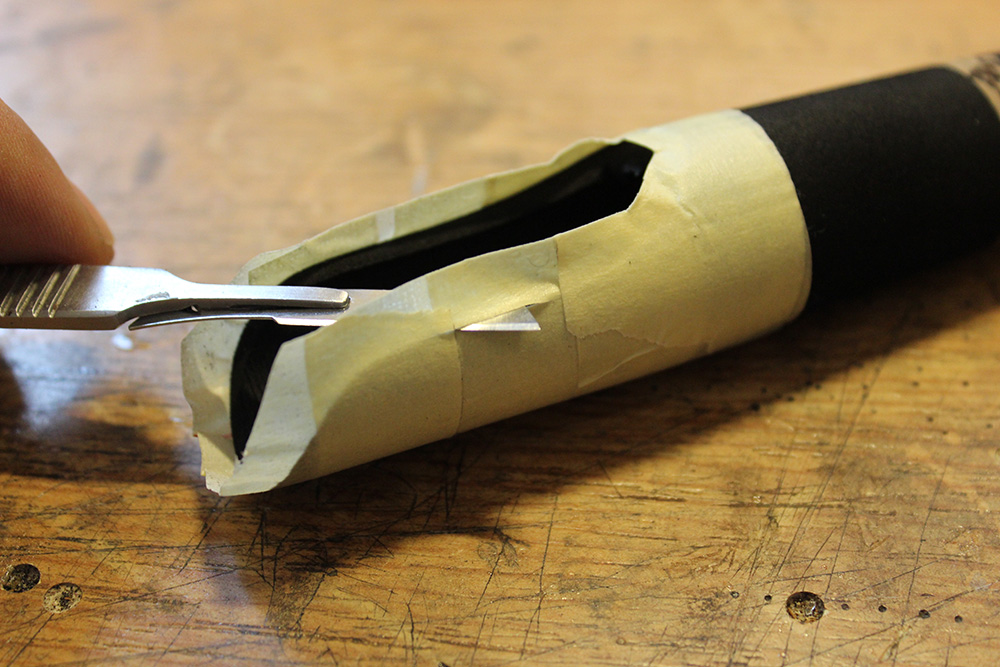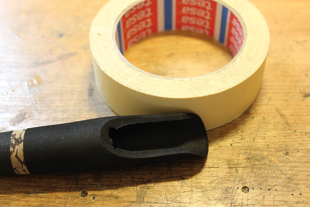5.Das Klebeband vorsichtig abnehmen und an den Linien ausgerichtet auf den neuen Griff kleben. Bei mir überlappt der dünnen Steg etwas, sollte euch nicht passieren.