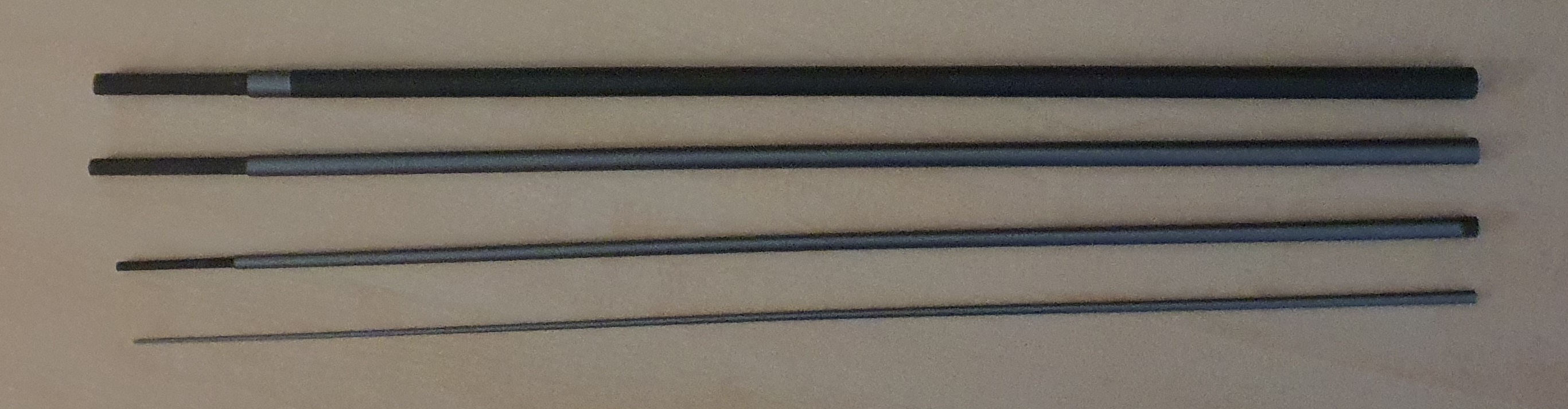 Die oberen Teile (3+4) sind geringfügig kürzer als die beiden anderen(jeweils zusammen).
