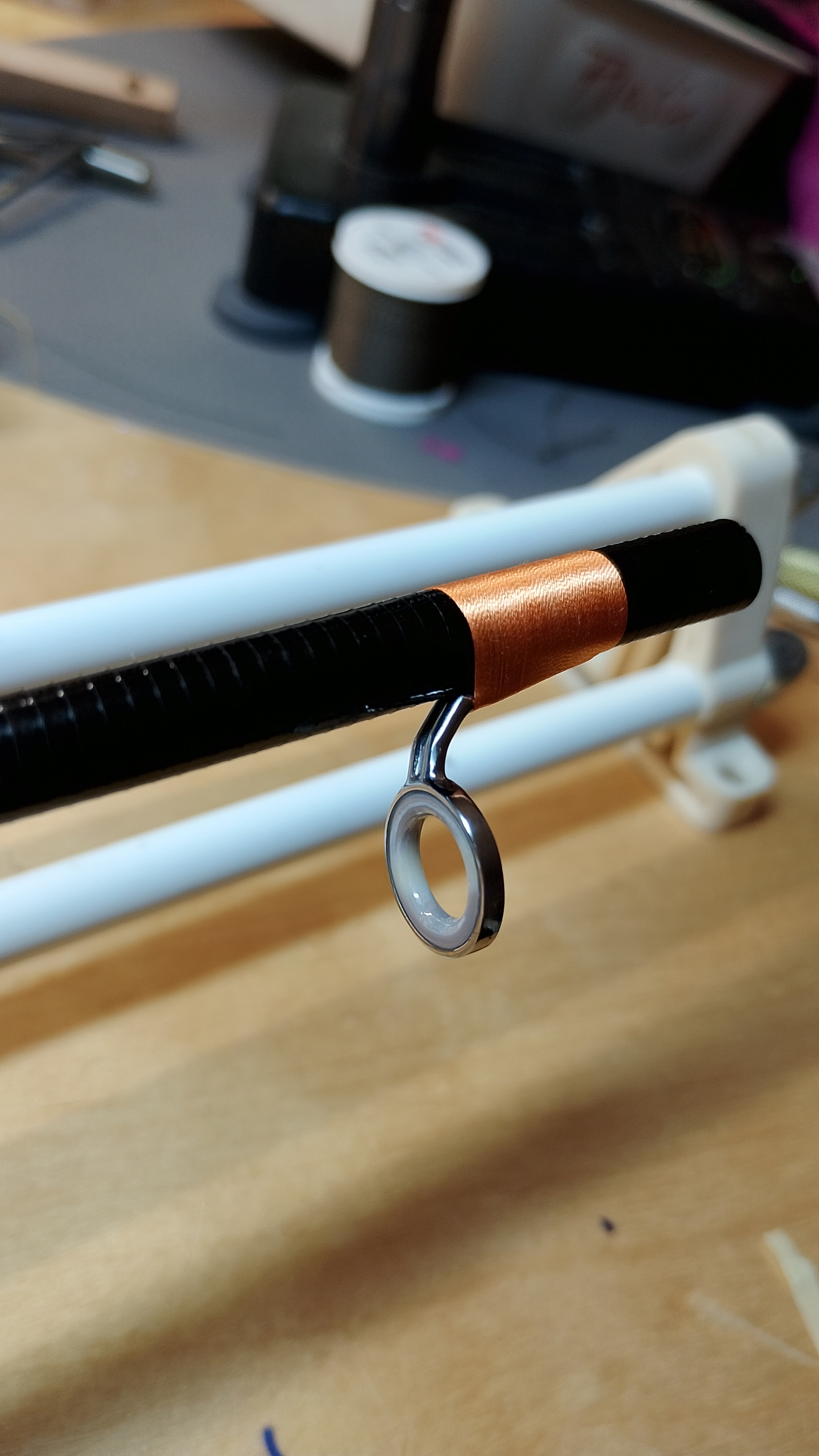 Gewickelt wird mit Seide, die Ringe sind selbstgedengelt und der Rollenhalter ist "Custom Made By MS" Augenzwinkern