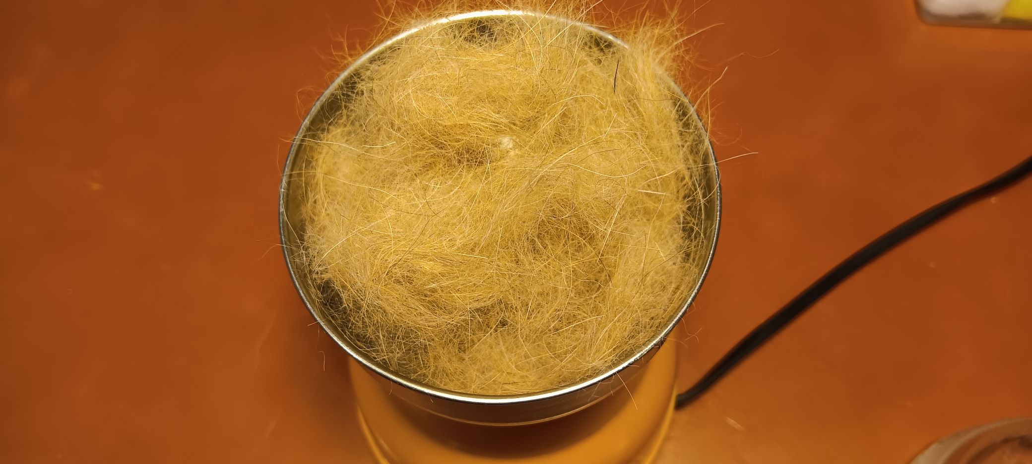 Das gleiche geht nun mit allen Naturhaaren nur das sie sinken, weil sie sich mit Wasser ansaufen.