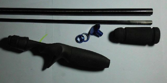 Also habe ich mich tagelang mit Blanks beschäftigt und der alte Barschzocker ist fündig geworden: Ein recht straffer und aus Transport- (und Schusseligkeits-)gründen zweigeteilter Blank von 6,3 Füßen (1,88 m). Das Teil hat einen sagenhaften Top-Durchmesser von 1,3 mm und ist am Buttend 11,5 mm stark. Das verspricht eine mindestens reg-fast-Aktion. Ich habe ihn auf die Waage gestellt, weil ich das angegebene Gewicht kaum glauben wollte: Beide Teile zusammen wiegen wirklich nur 30 Gramm!