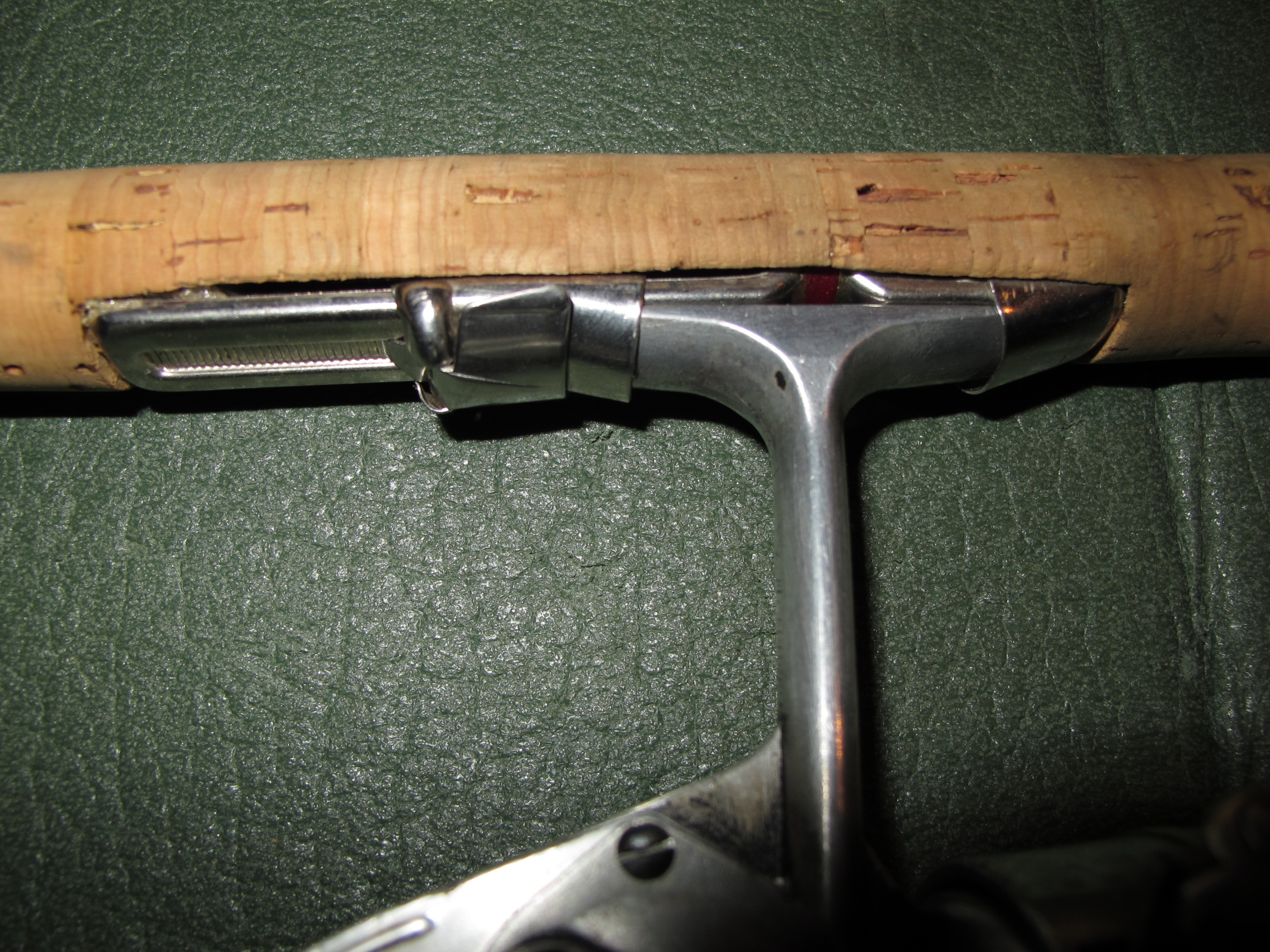 ---- jetzt die Korkstücke für unterhalb auf den blank schieben, so weit runter, dass man den rollenhalter an allen 3 Punkten anwickeln kann,