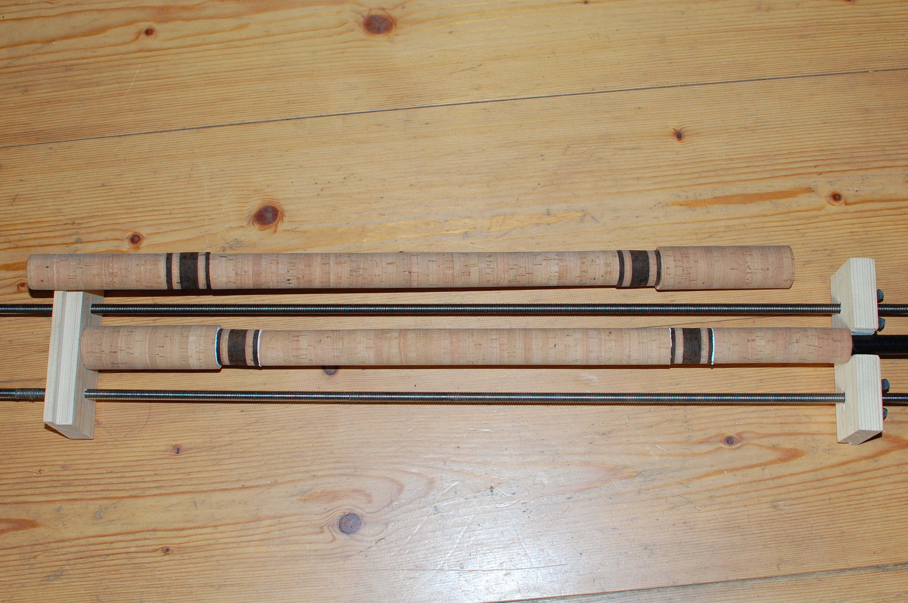 3. Ich bin auch neu hier im Rutenbau und ich kann dir sagen, wenn du Kork schleifen willst, dann klebe ihn vorher, nicht so wie ich hier auf dem Bild. Sonst wirds nachher schwer alles auf den gleichen durchmesser zu bringen und schöne Übergänge zu schaffen.