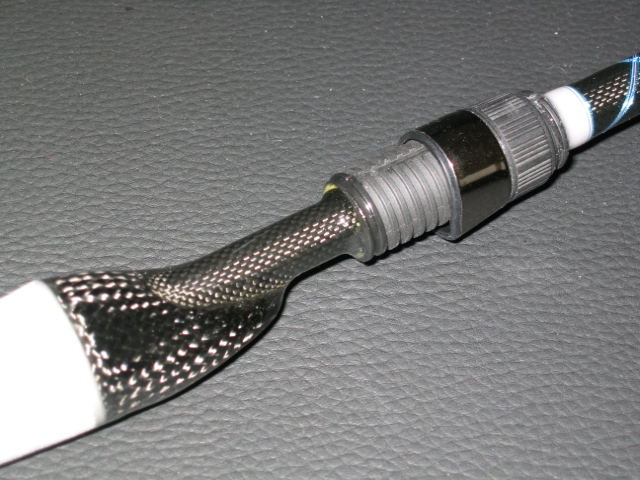 Gibt nur einen kleinen Minuspunkt: Die Gewebestruktur der Carbonteile beißt sich mit der des Blanks. Ist Geschmackssache, und Pickelfi..erei ich weiß.....
