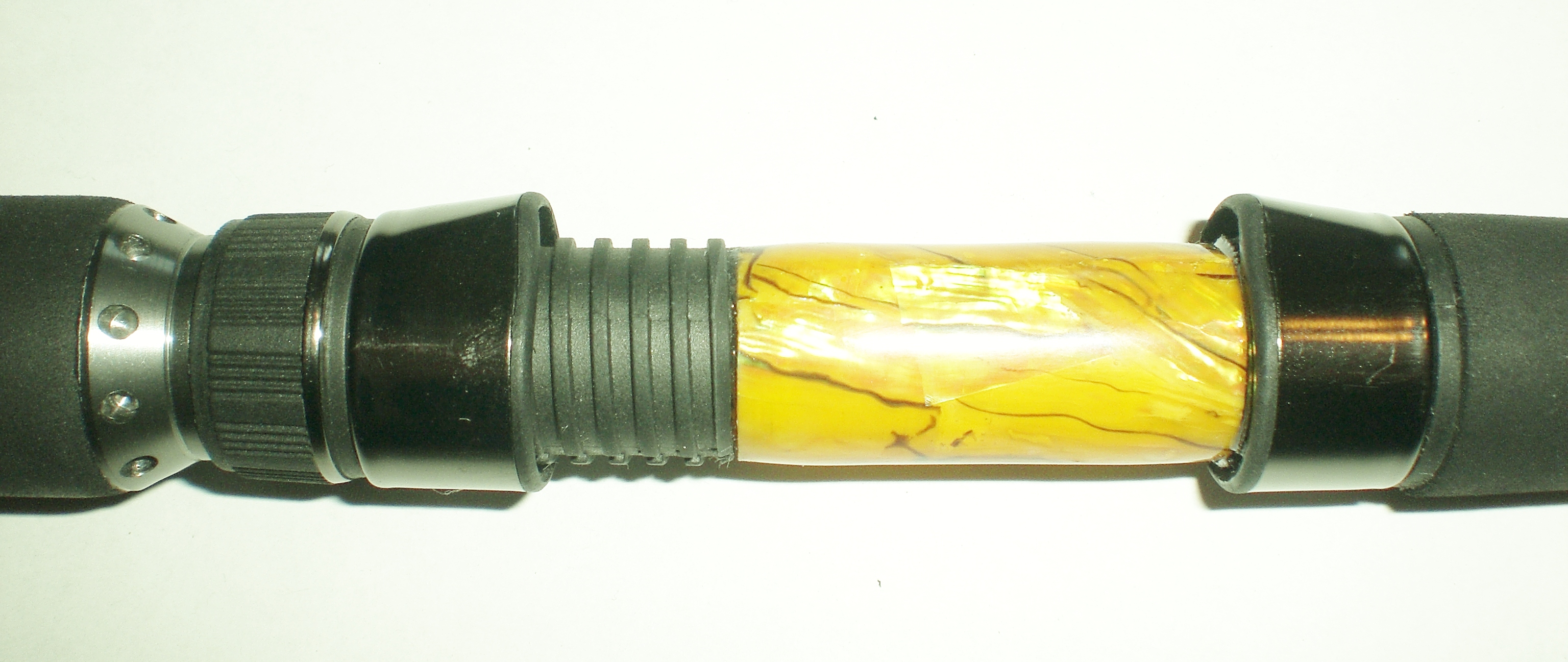 Als RH kam ein 16er PacBay SKin Titan zum Einsatz, der Spacer wurde mit Abalone Furnier überzogen. Metallteile stammen aus meinem Fundus und lagen einem X-zoga Blank bei.