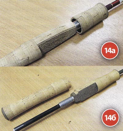 wenn man den RH umdreht, liegt der Handballen auf dem Griffmaterial. Ansonsten fallen mir für einen kompletten Korküberzug , die sehr gelungenen Customlösungen , von Klang ein. Da würde ich mal suchen, um eine Anregung zu finden. Alternativ gibt es auch gummierte RH, wie z.B. Aero, wo der Handballen auch nicht am Gewinde anliegt, find ich sehr schön für eine Barschrute.