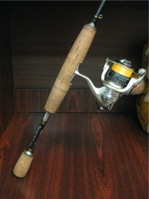 In den nächsten Tagen würde ich mir gerne eine schöne, leichte Barsch-Rute aufbauen. Grundlage hierfür wird ein WFT Penzil 1,5 - 6,5 gr. (2-tlg.) sein. Da diese Rute recht oft auf dem Heimweg von der Arbeit zum Einsatz kommen wird (am Schluchsee im schönen Schwarzwald), möchte ich diese so leicht und angenehm wie möglich aufbauen. Und mit "angenehm" meine ich insbesondere den Griff (--> Winter). Bisher greife ich bei allen Ruten (außer bei den BC) direkt auf den Rollenhalter. Das schöne und angenehme Kork ist in dieser Haltung aber von der Hand weit entfernt. (Siehe Foto)