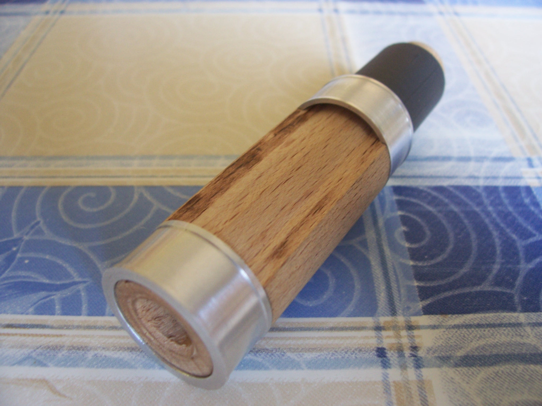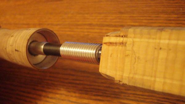 Damit die Huelse fest sitzt, wird vor dem Rollenhalter noch eine Gewindehuelse auf den blank geklebt, dass sie ca. 5- 7 mm vor dem oberen Griffende rausschaut, dann einen griffigen winding-check mit passendem Innengewinde drauschrauben-fertig!