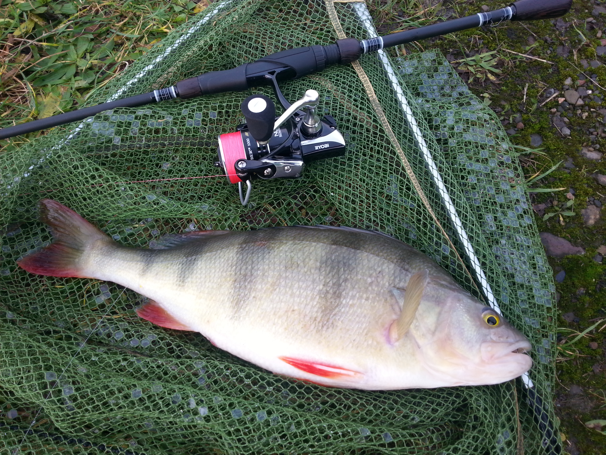 Gleich der erste Test der Rute brachte einen, für unsere Verhältnisse am MLK, enormen Barsch von 46cm und ca. 1500g (meine bisheriger Rekord) und am nächsten Tag noch einen Barsch von 45cm.