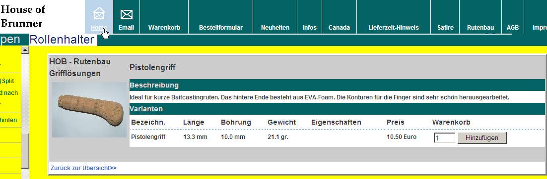 Die haben auch einen pistolgrip und die ersten Wurfversuche damit waren sehr zufriedenstellend. Aufgrund der kurzen Rutenlänge und der vollparabolischen Aktion der z.T. Glasfaserblanks lassen sich so, leichte Köder sehr gut werfen.