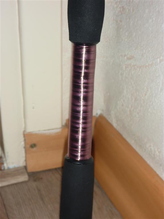 Ich habe dann mal die entsprechende teilen geordert, und bin an die arbeit gegangen. Ich habe die rute mit ein split grip aufgebaut mit 4x eine Tigerwrap, obwohl man nur 2 sieht. einer ist unter die hakenöse, und einer ist unter den bockring.
