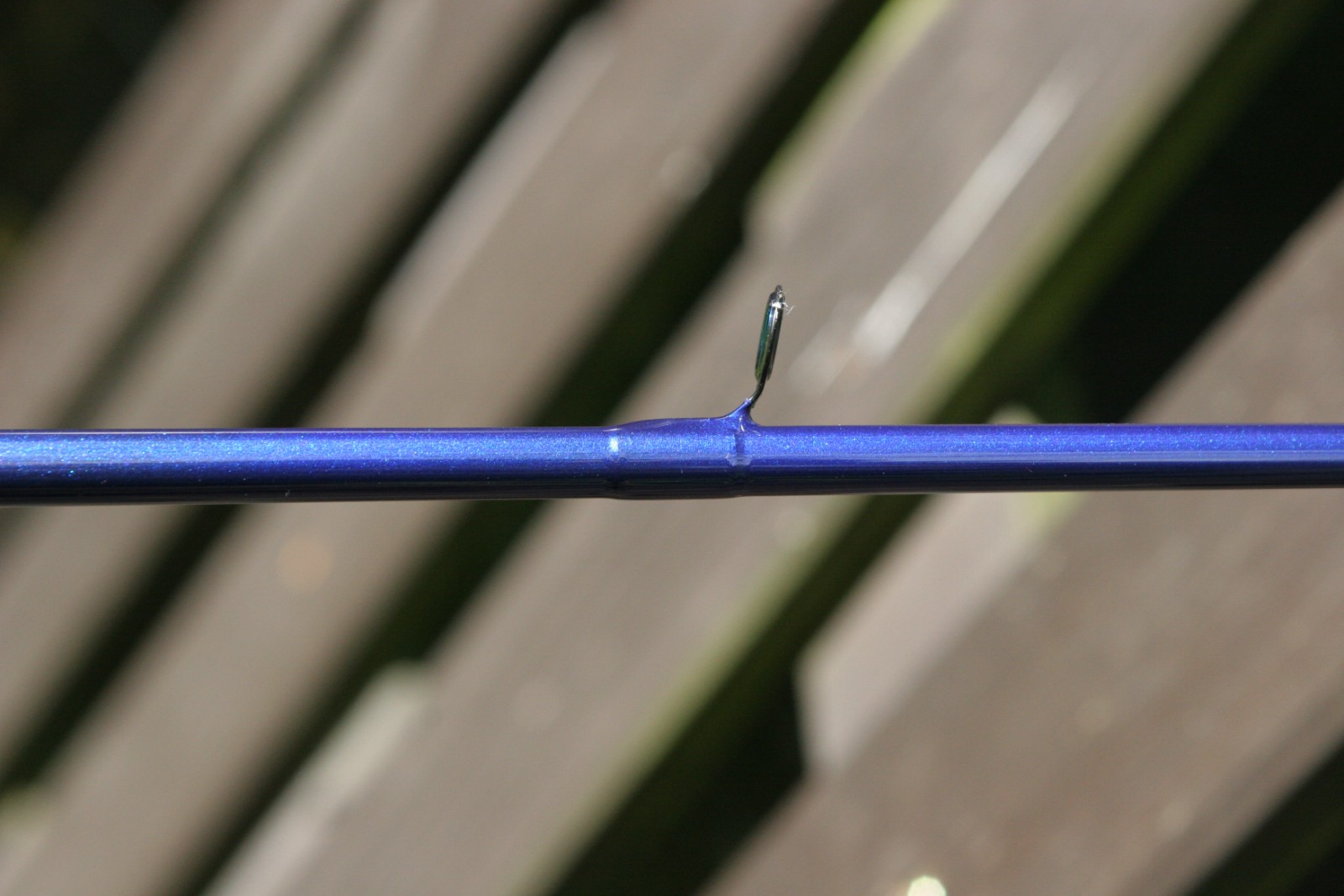 Habe das nackte unlackierte Blank im Griffberei wo der Rollenhalter hinkommt bereits fertig lackiert, da man hier ja ein kleines Stück vom Blank sieht. Darauf habe ich die Griffsektion aufgebaut und die Ringe gewickelt. Nach einem dünnen lackieren der Ringwicklungen habe ich das komplette Blank mit abgeklebten Ringen in blau-metallic lackiert. Wo der Lack trocken war kam noch eine dünne Schicht Klarlack drüber.