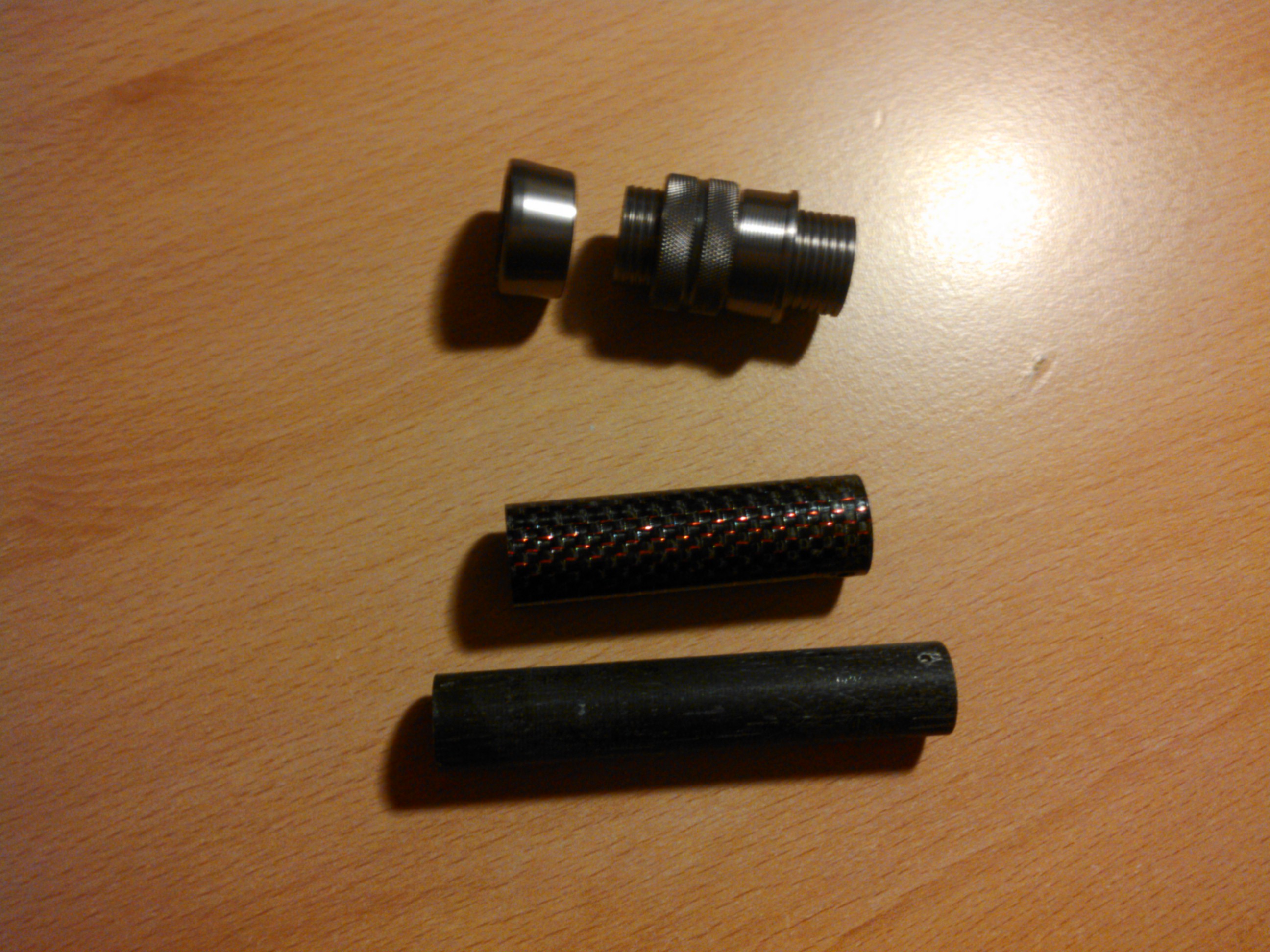 Problem ist, dieses Carbonrohr welches Du weglassen willst zentriert die drei anderen Einzelteile, was für die Funktion nicht unwichtig ist.