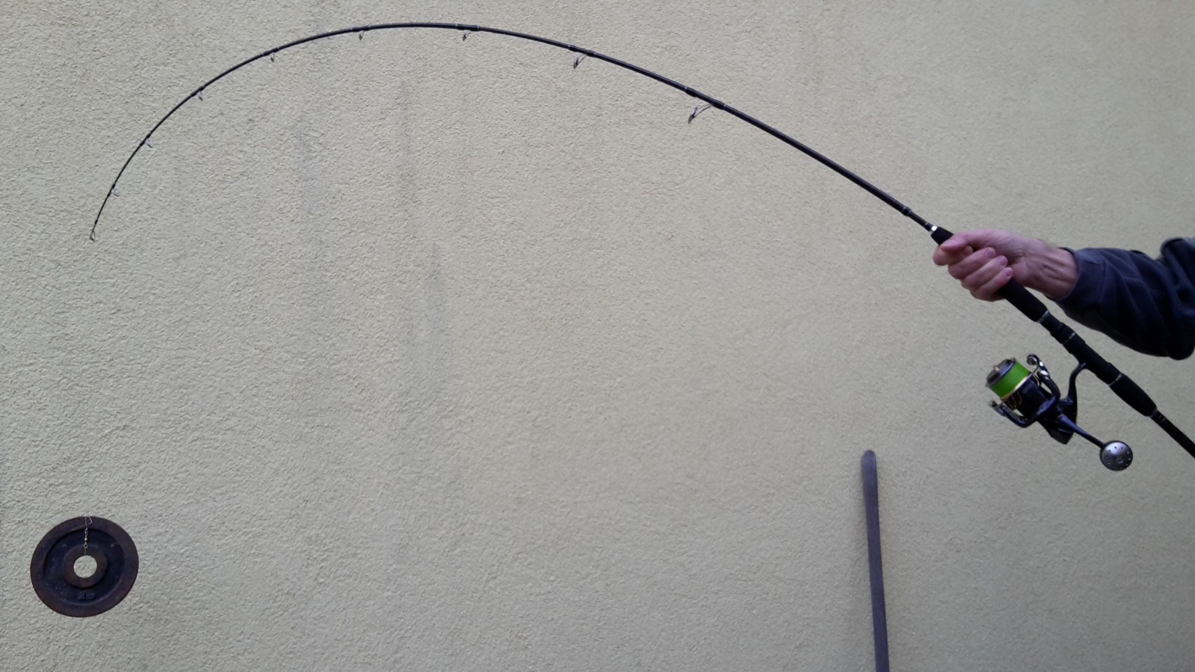 schön schlichter Aufbau, ganz mein Geschmack Zweidaumenhoch ... hast Du den Blank mal richtig krumm gemacht? Auf dem Belastungsfoto sieht es so aus, als ob das untere Ende des Mittelteils steifer ist als das Handteil im oberen Bereich - gerade bei der Steckung so kurz über dem Griff ist das ein potentieller "Knackpunkt" cool