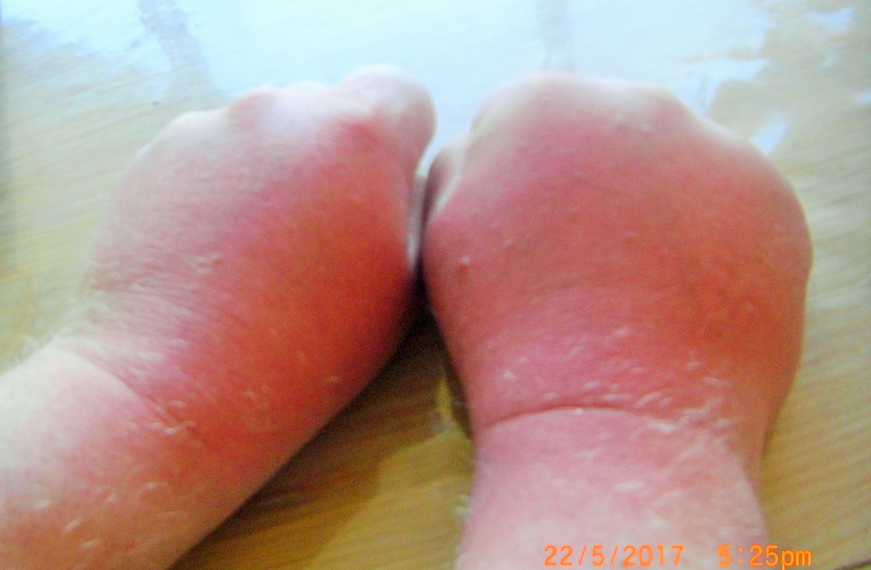 Der einzige Fang des Tages denn wir mitgebracht haben, war ein kräftiger Sonnenbrand auf den Händen großes Grinsen (siehe Bild)