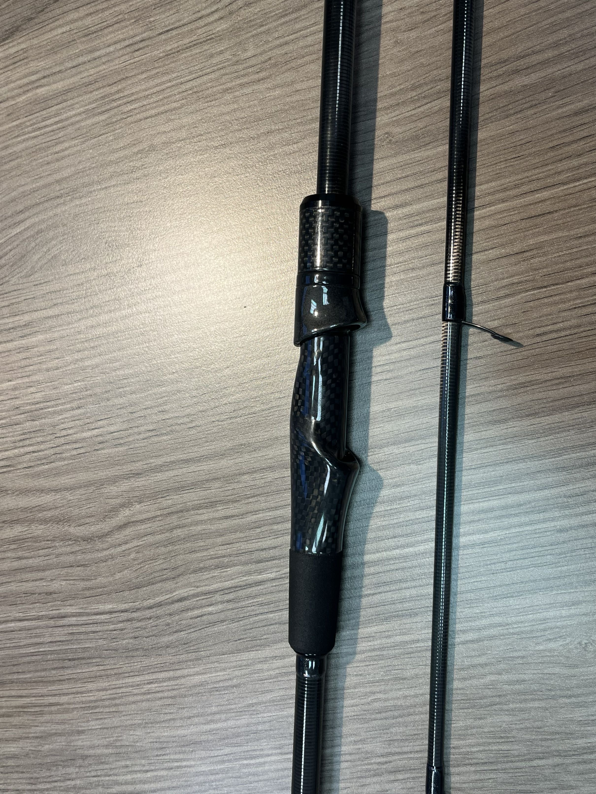 Material ist auch ein 58msi HM Carbon gepaart mit einer 44msi Matte, welche den Flex hier rein bringt. Im HT hat man noch Anteile einer 33msi Matte eingebaut, so war man in der Lage einen relativ günstigen Blank (im Verhältnis zu den anderen HM Blanks) zu produzieren. Auf das Nachschleifen hat man auch verzichtet, so hat der Blank eine Glanzlackierung erhalten.