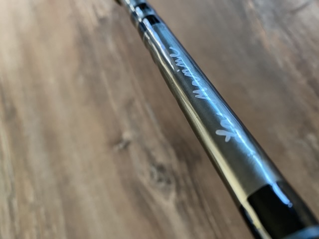 Ab dem Winding Check hoch richtung Rutenspitze lackiere ich so 15cm komplett. Übermale die Beschriftung und ein paar Zierwicklungen.