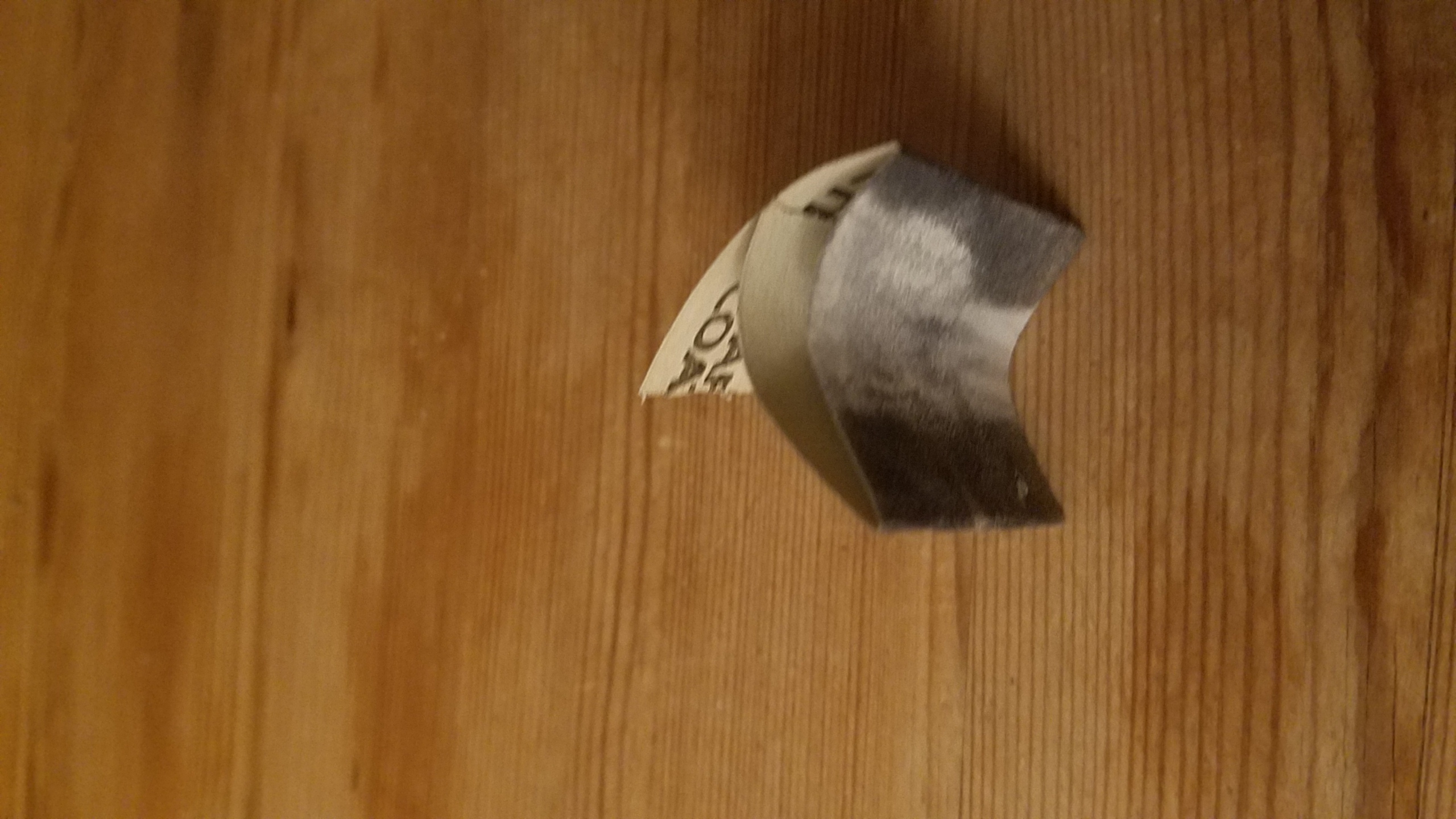 Aber welcher Rutenbauneuling hat diese Möglichkeit schon. Da hier auch noch ein Hakenhalter im Weg ist, halte ich es tatsächlich für günstiger mit einem dreifach gelegtem Steifen Schleifpapier den Lack in Längsrichtung zu schleifen und dabei den Blank mit der Hand zu drehen. Habe ich allerdings nicht so genau erklärt. Durch die entstehenden Schleifspuren kann man da sehr exakt arbeiten, da man sieht wo man noch abtragen muss. Wie man auf dem Bild sehen kann, passt sich das Schleifpapier auch der Blankrundung an. Und um so Wellen oder Kanten reinzubekommen muss man sich schon ziemlich ungeschickt anstellen.