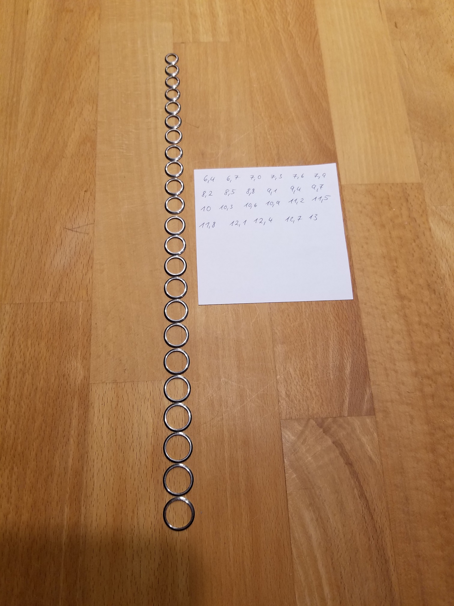 Satz Winding Checks Edelstahl? (ganz leicht magnetisch) sehr fein in 0,3mm Schritten von 6,4 -13mm (23 Stück)