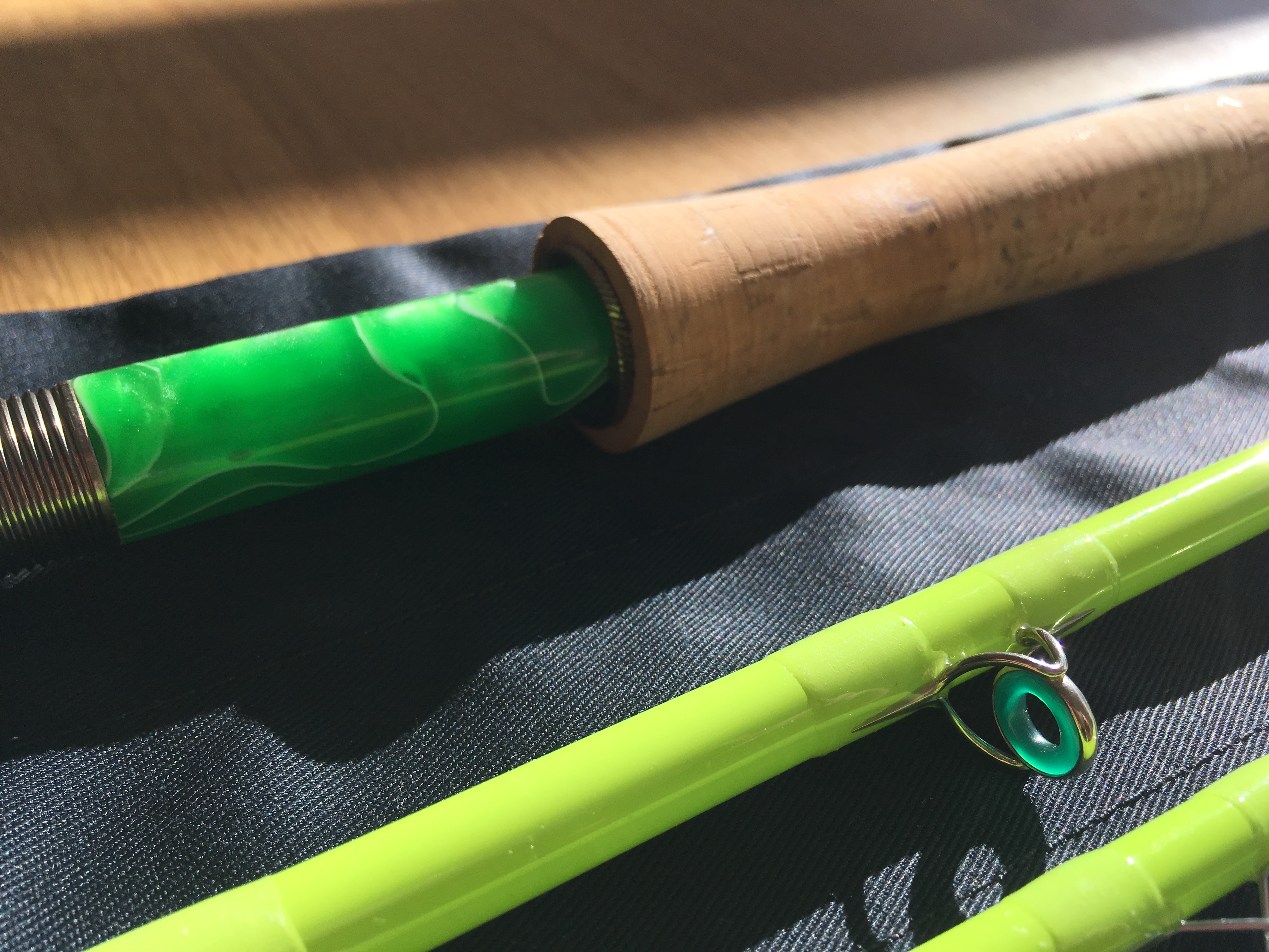 ich will Euch ein paar Bilder von einer zumindest farblich ziemlich außergewöhnlichen Fliegenrute zeigen, die ich gebaut habe.