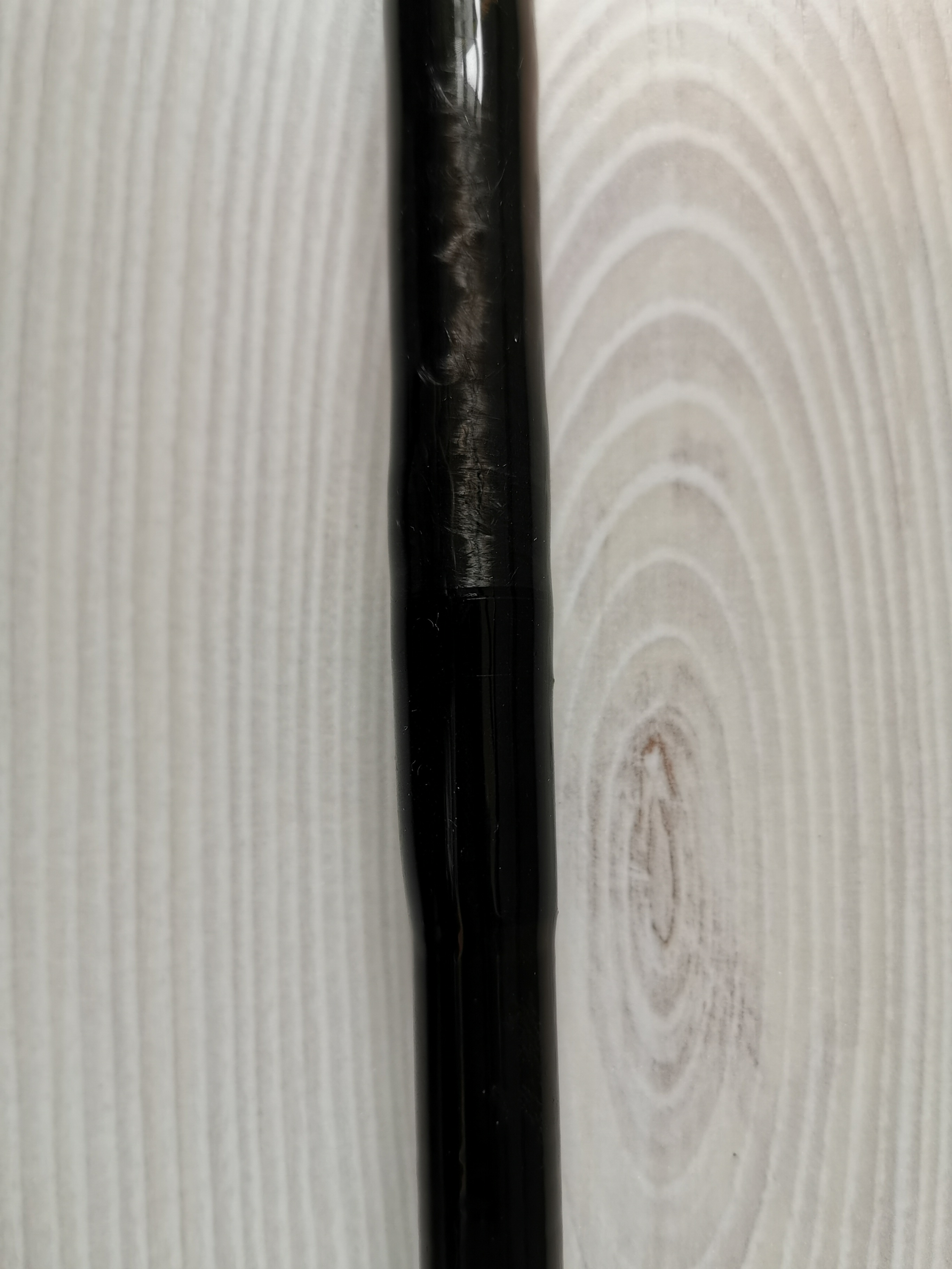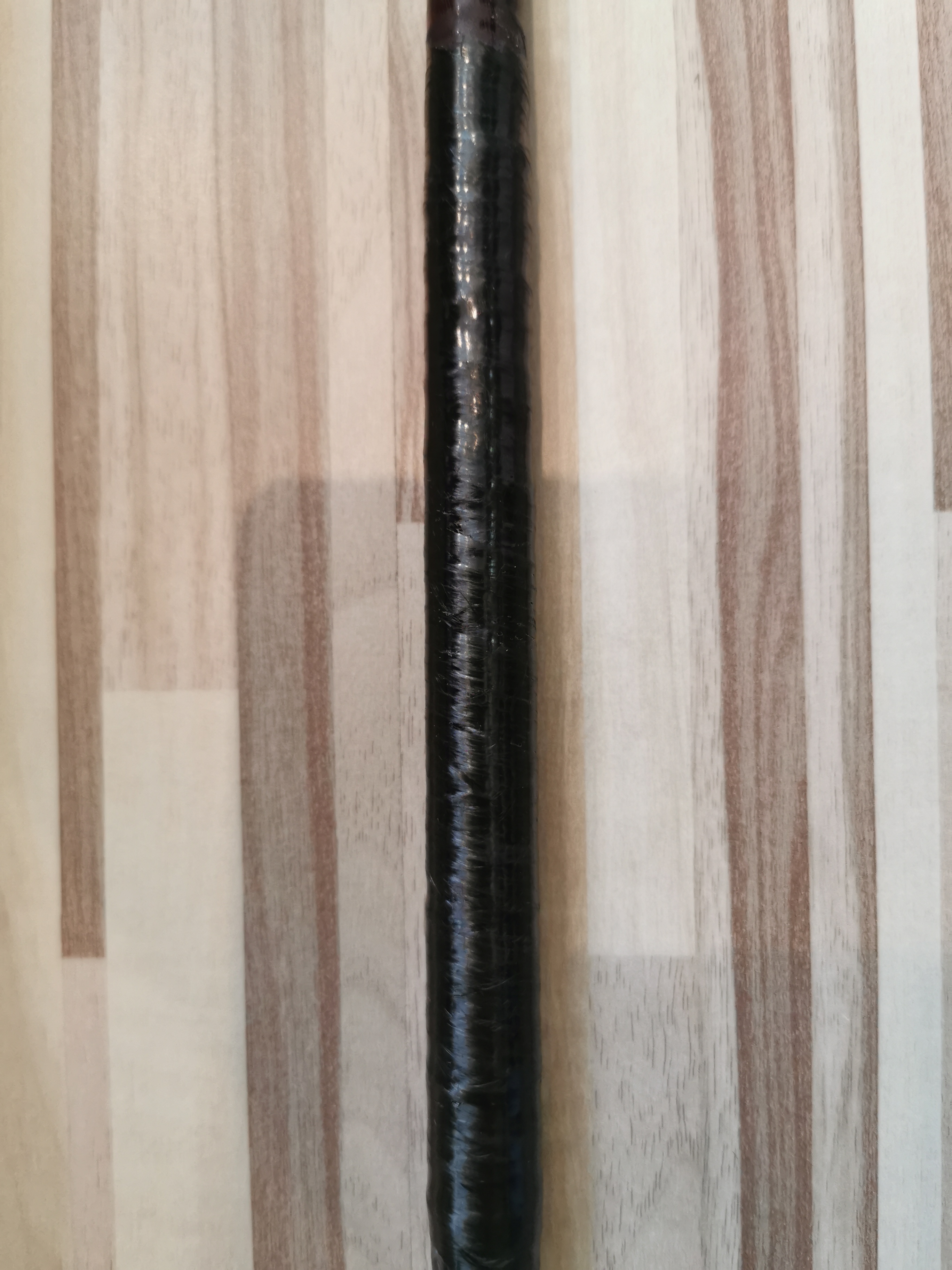 Danach hab ich den blank mit 2k kleber bestrichen und mit carbon Fasern kreuzweise nach unten und oben gewickelt unter festem Zug danach hab ich noch mal alles fest mit 2k kleber getränkt und anschließend einen schrumpfschlauch darüber gezogen und geschrumpft.