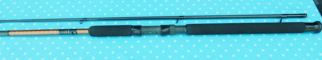 Der Blank stammt aus der Sportex-Custom Serie von Gattenhaus.de, ist 2,70m lang und ist mit 30-60g angegeben. Denke das Gewicht packt er auch, am geilsten finde ich aber die Aktion von dem Stecken, mit einer sehr schnellen aber doch kraftvollen Spitze, die ab etwa dem 1. Drittel in ein starkes Rückgrad übergeht.