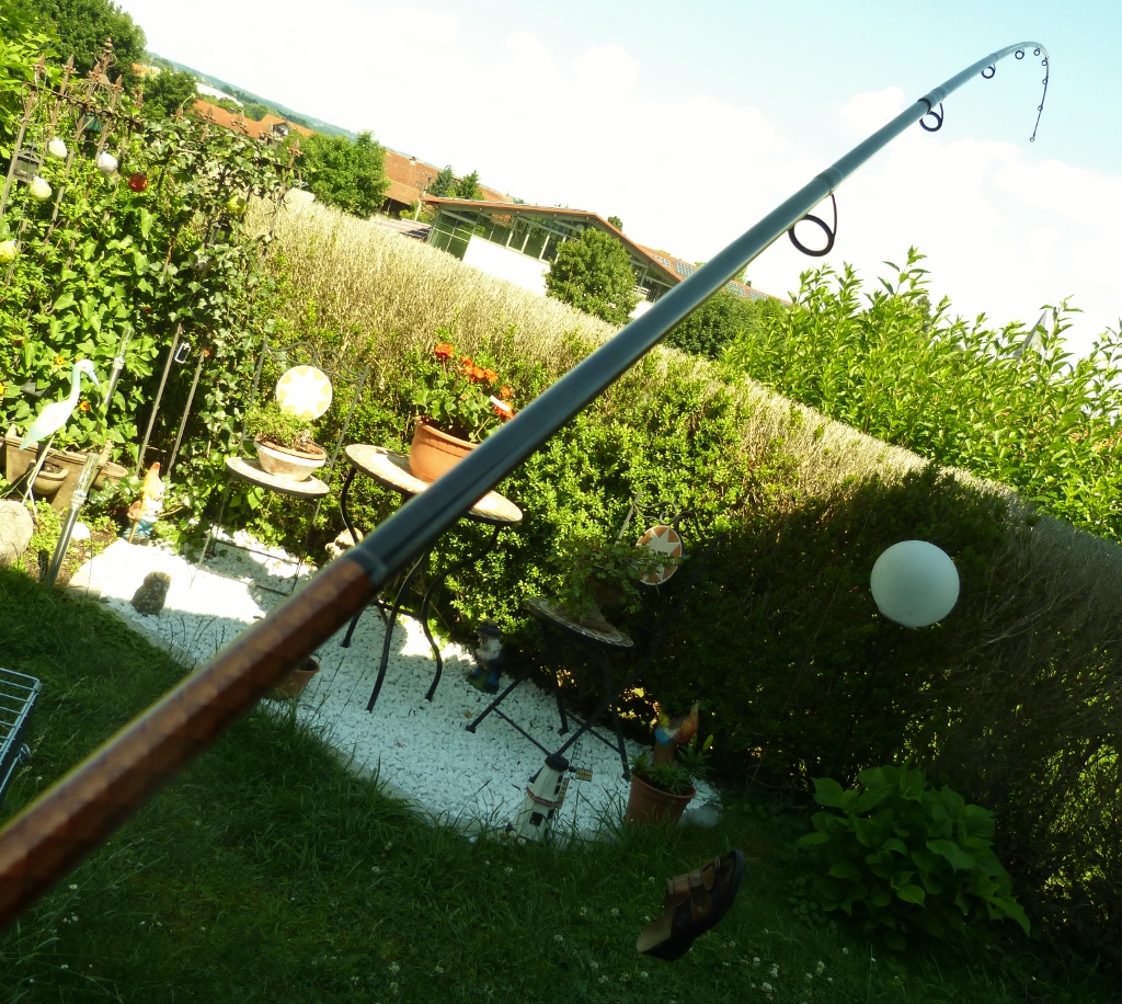 hier mal eine Rute, die bei einem Blanktest entstanden ist. Die Rute ist für meinen Bruder, der unsre Leidenschaft nicht sonderlich nachvollziehen kann, der Aufbau ist somit recht einfach gehalten und tut eigentlich nichts zur Sache.